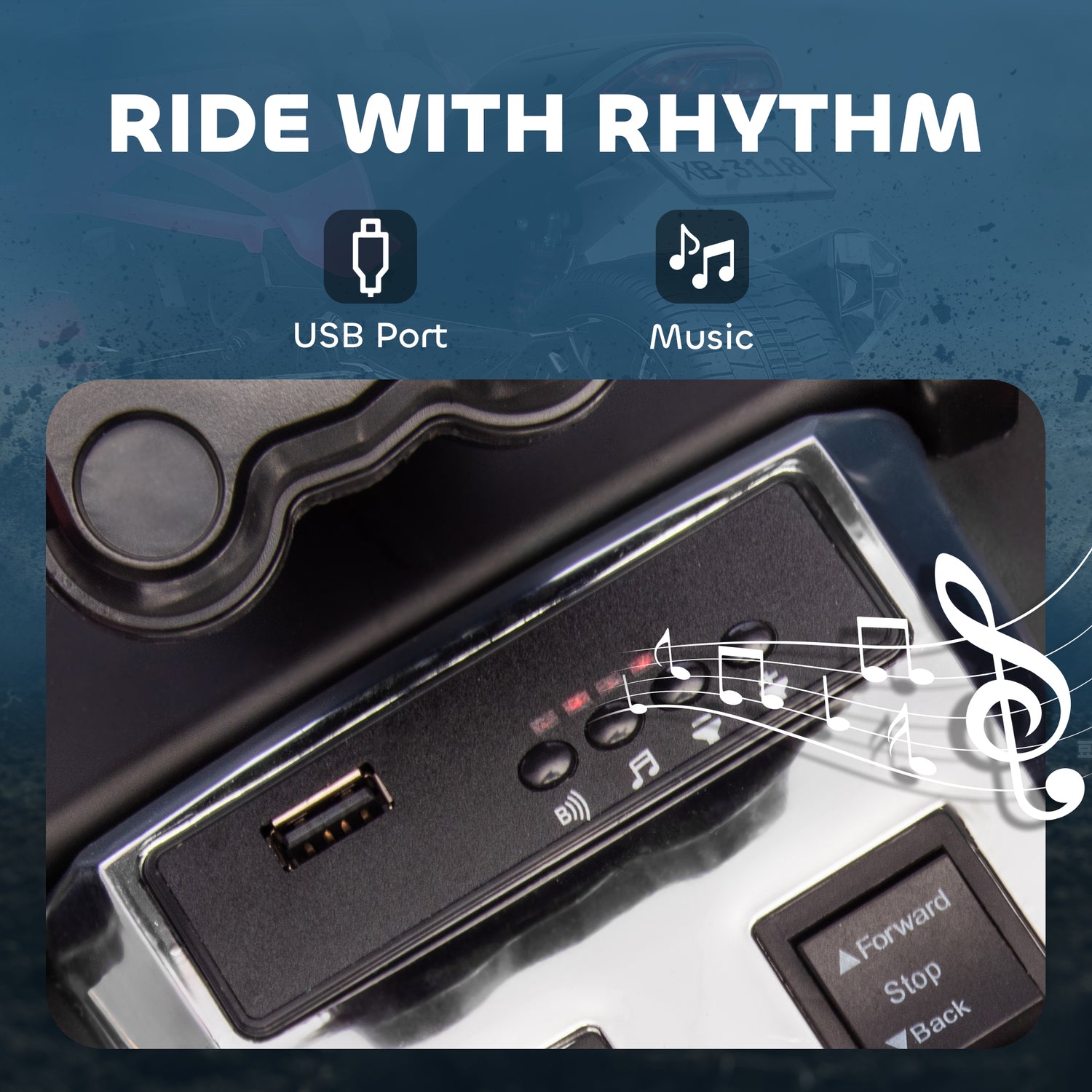 - Fun-filled features: Front and rear LED lights improve visibility, while built-in music with USB input keeps every journey exciting and entertaining on the kids quad bike.