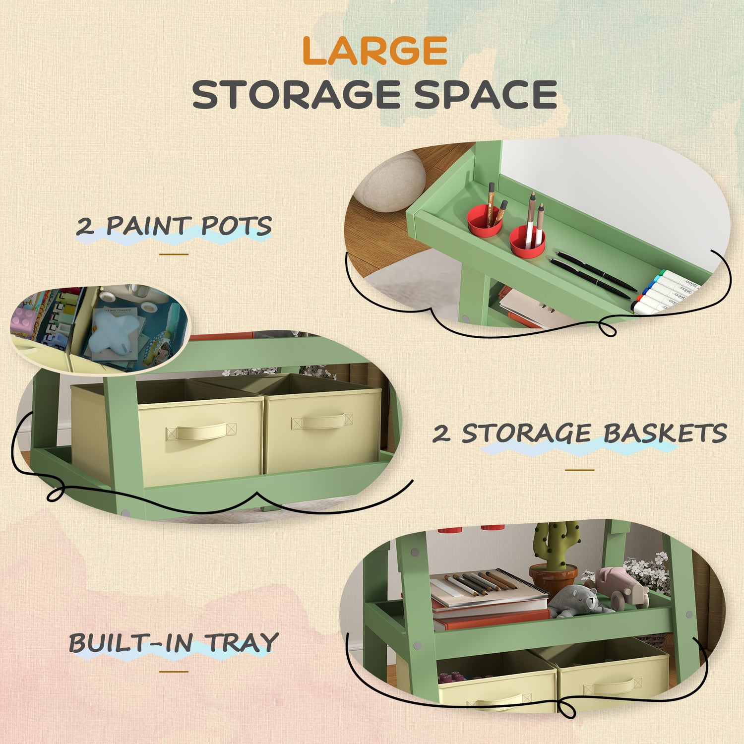 - Organised painting: Includes 2 paint pots and holders on the easel for kids, keeping art supplies tidy and easily accessible during creative activities.