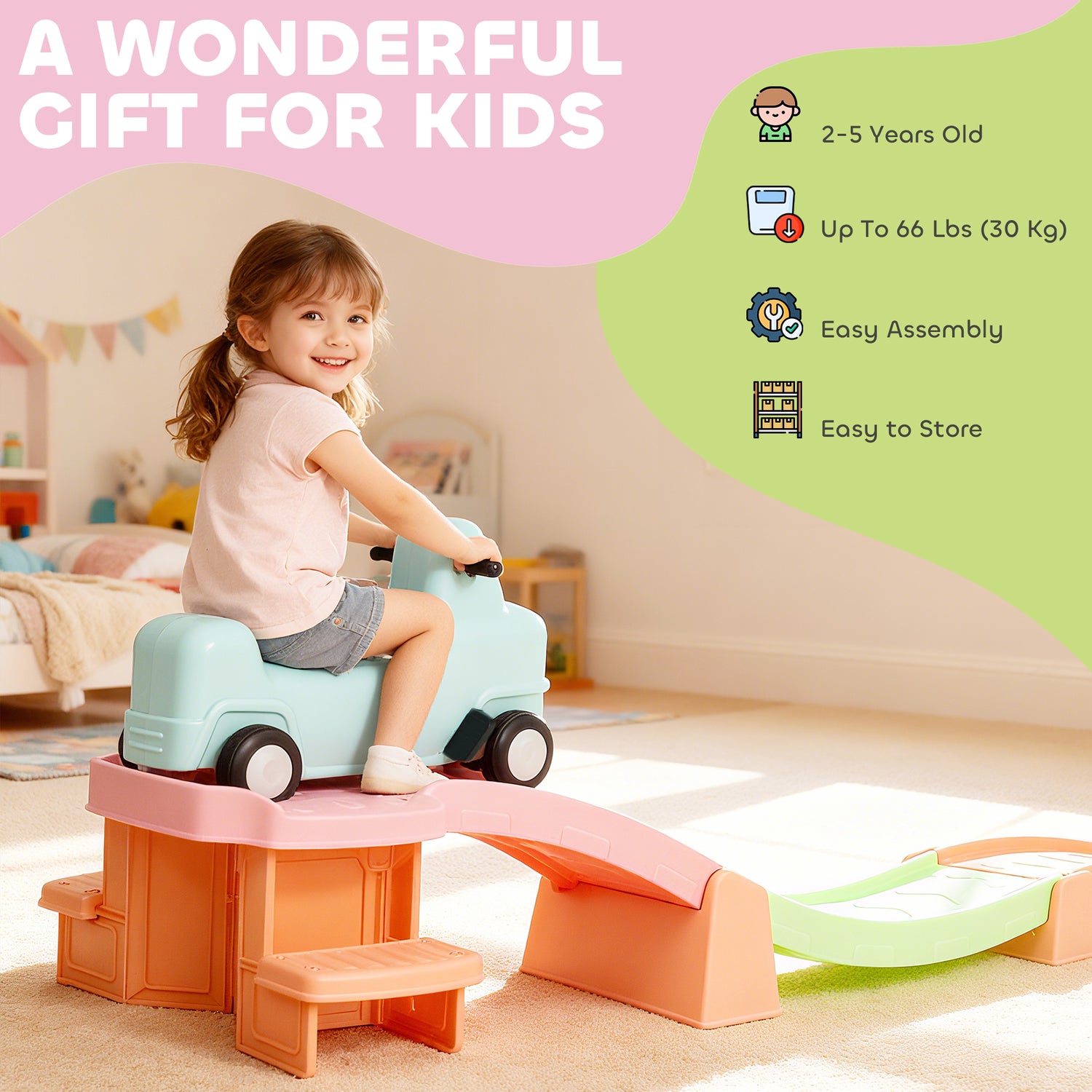 AIYAPLAY 3(m) Four-Piece Ride on Kids Roller Coaster w/ Non-Slip Steps, for Ages 2-5 Years - Orange