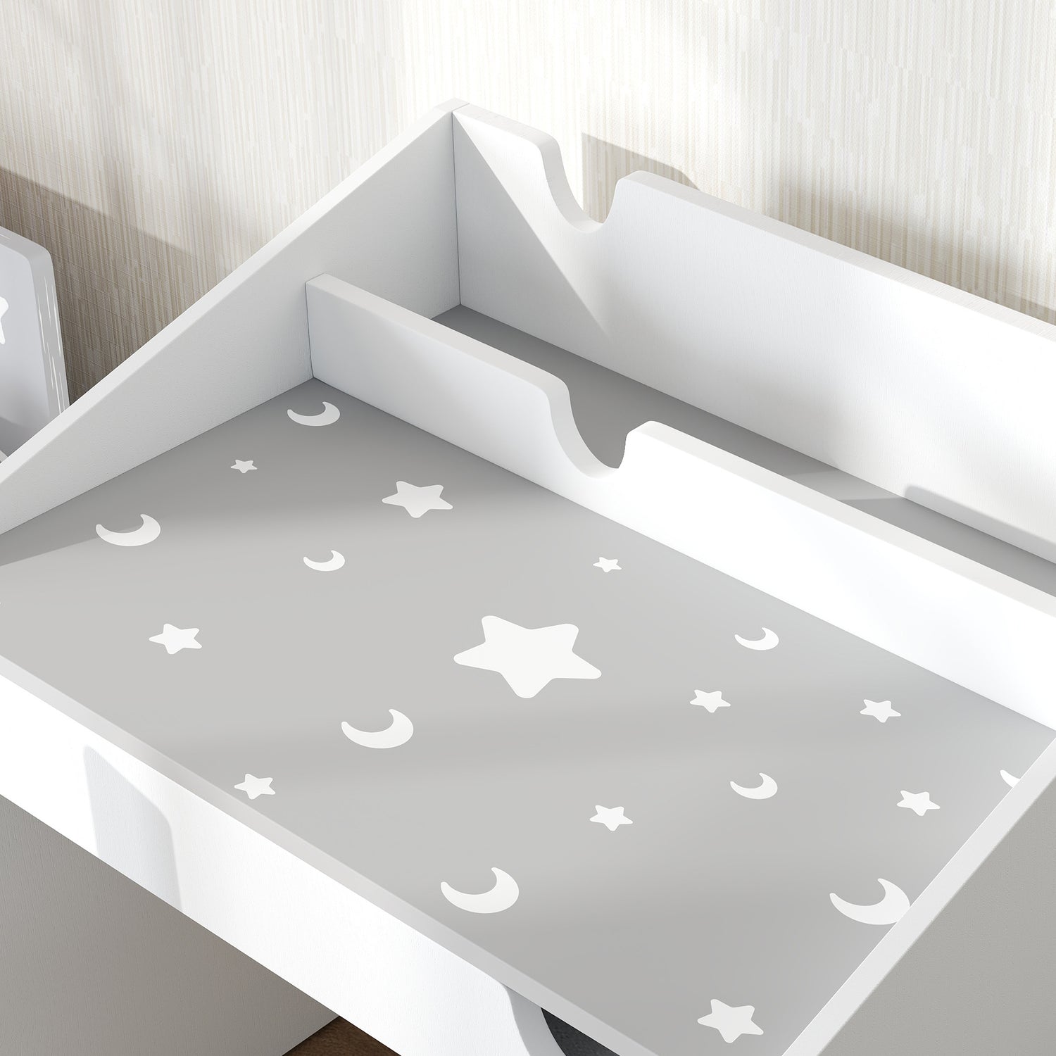Discover the charm of the AIYAPLAY kids desk and chair set, adorned with a charming star and moon pattern. This childrens desk encourages creativity and organization with its spacious storage, including a pull-out drawer and tabletop organizer. Crafted for comfort with rounded corners, it's a great kids study table for reading, crafting, or enjoying a meal. A delightful addition to any child's room!