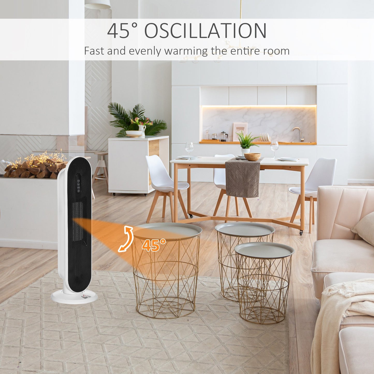 HOMCOM Ceramic Space Heater Indoor Tower Heater with 45 Degree Oscillation, Remote Control 1200W/2000W