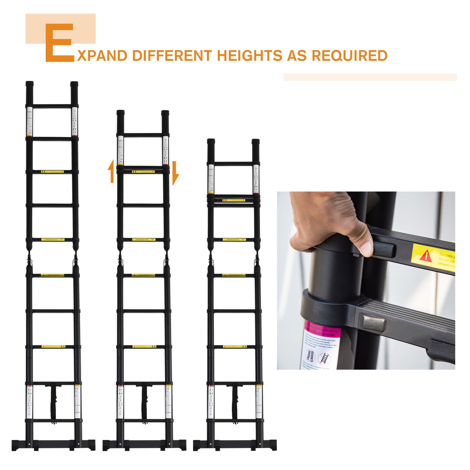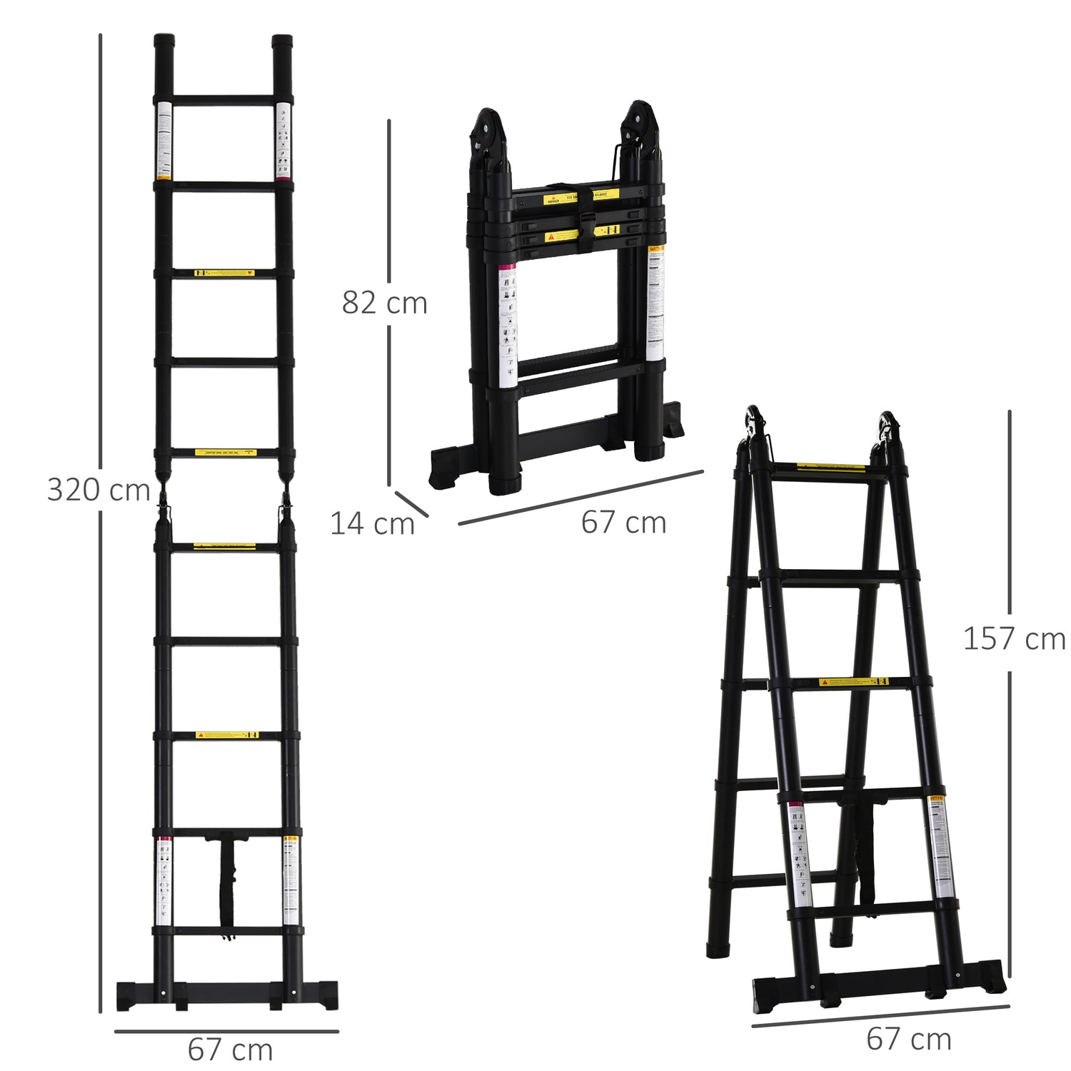 DURHAND 3.2m Telescopic Ladder with Anti-slip Pedals Black