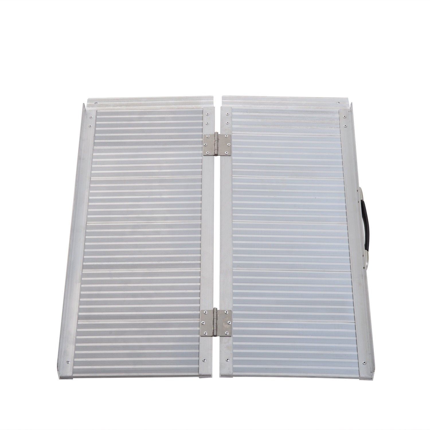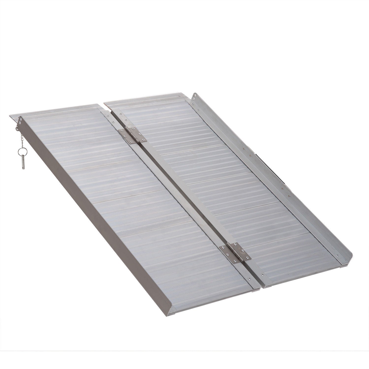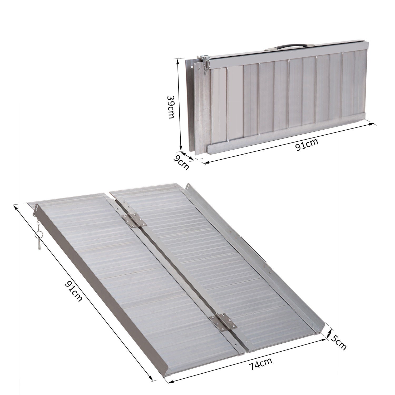 Get easier access to raised surfaces with this wheelchair ramp from HOMCOM. Covered with skidproof surface to prevent slipping, making it ideal for any weather condition. When not in use, the mobility scooter ramps can be easily folded, saving space and enabling storage in the vehicle or at home. The durable aluminium frame is anti-corrosive to last for years of usage. This door ramp can be used with wheelchairs, lawn mowers, scooters or any other heavy item that may have trouble with stairs.