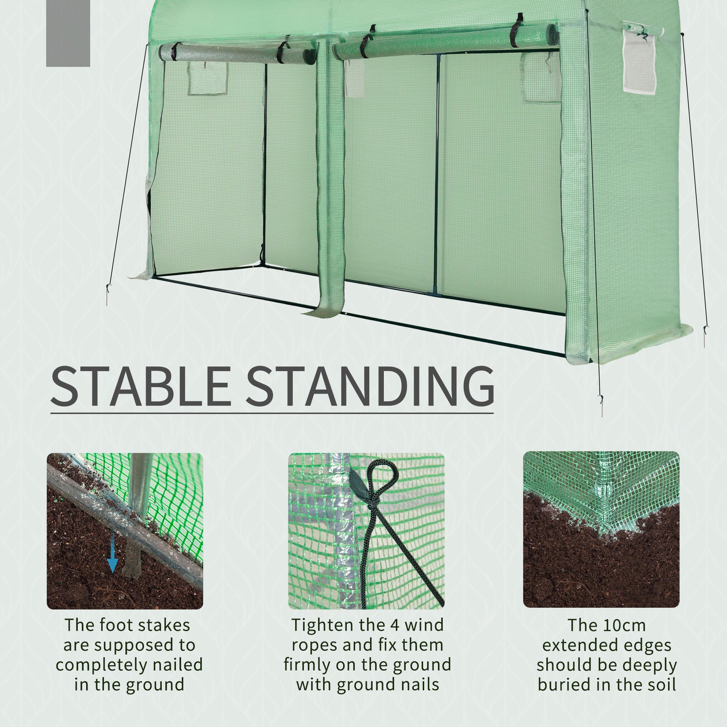 - STEEL FRAME: Heavy-duty formation keeps the greenhouse standing steady and in place. Curved shape for extra stability.