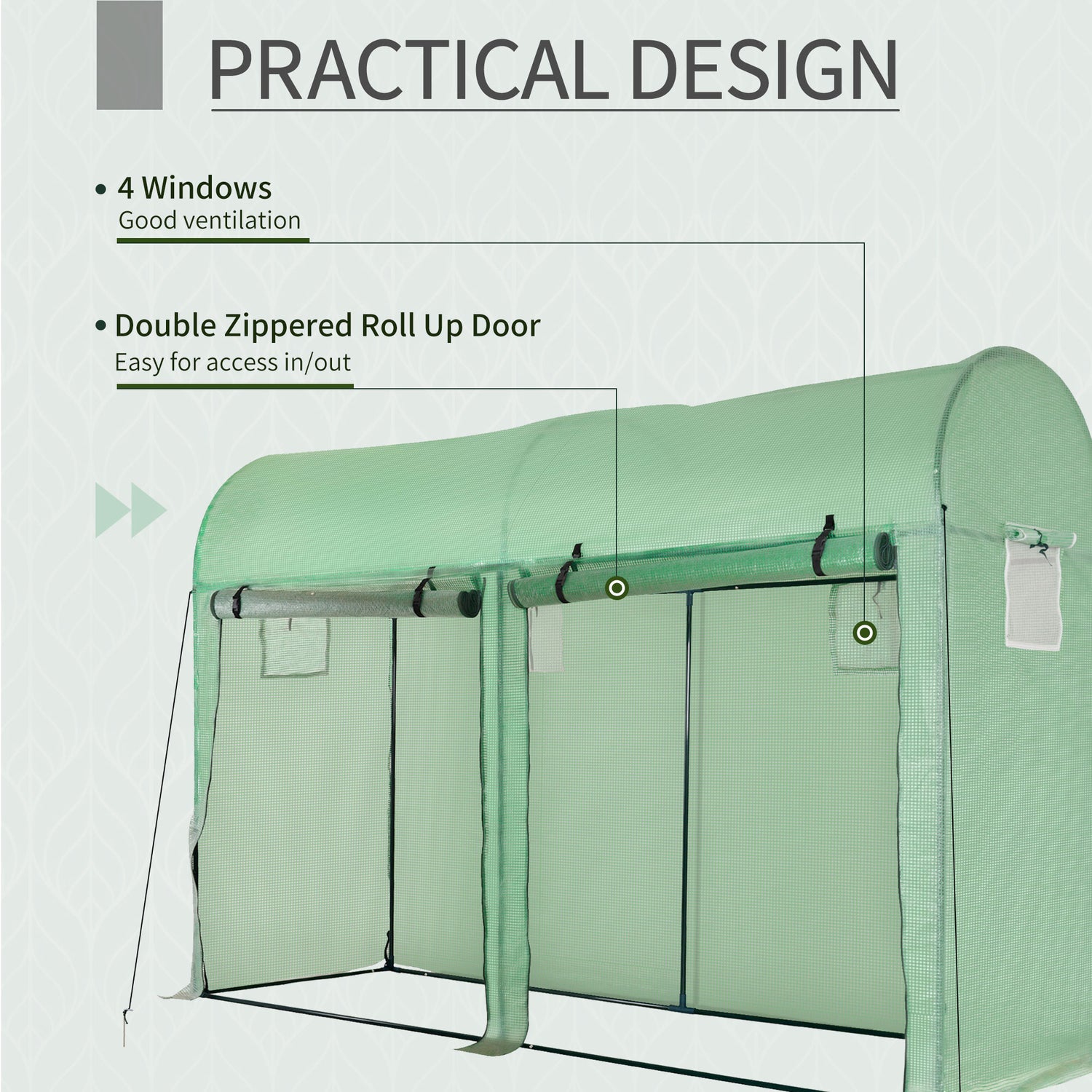 - FOUR WINDOWS: Placed on the side and back, allows air to enter during hotter days. An easy way to regulate the temperature inside.