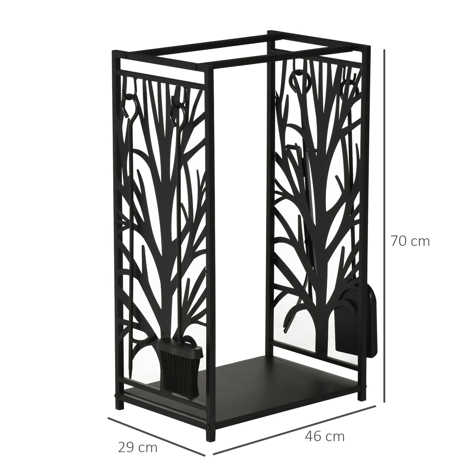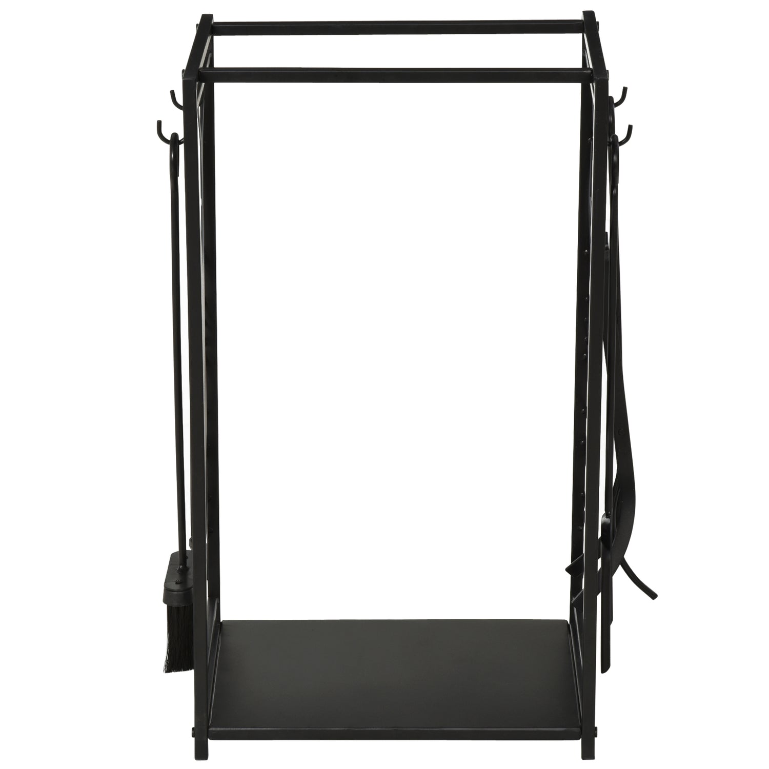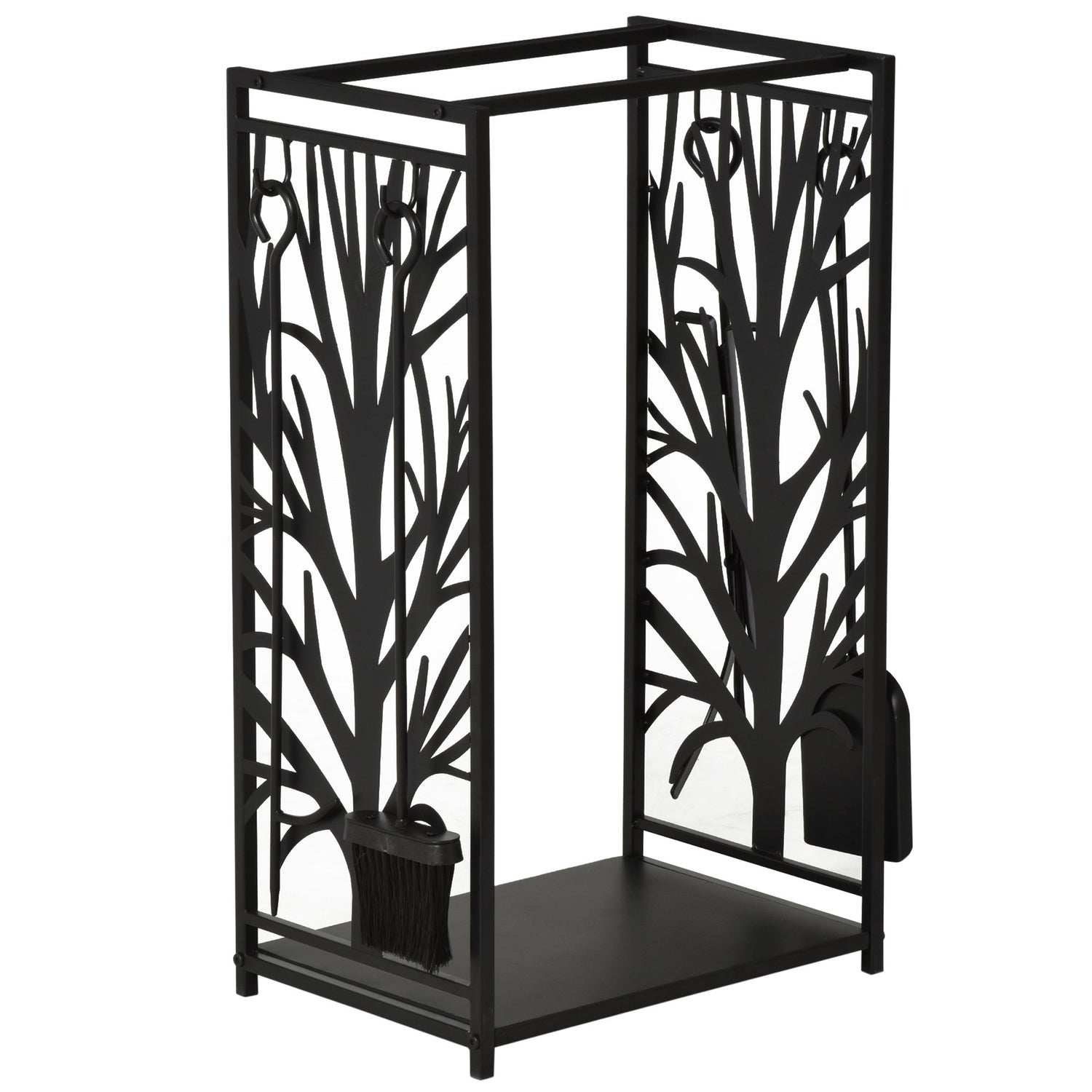 HOMCOM Heavy Duty Firewood Wood Log Rack Fireplace Wood Storagew/ 4 Tools, Black