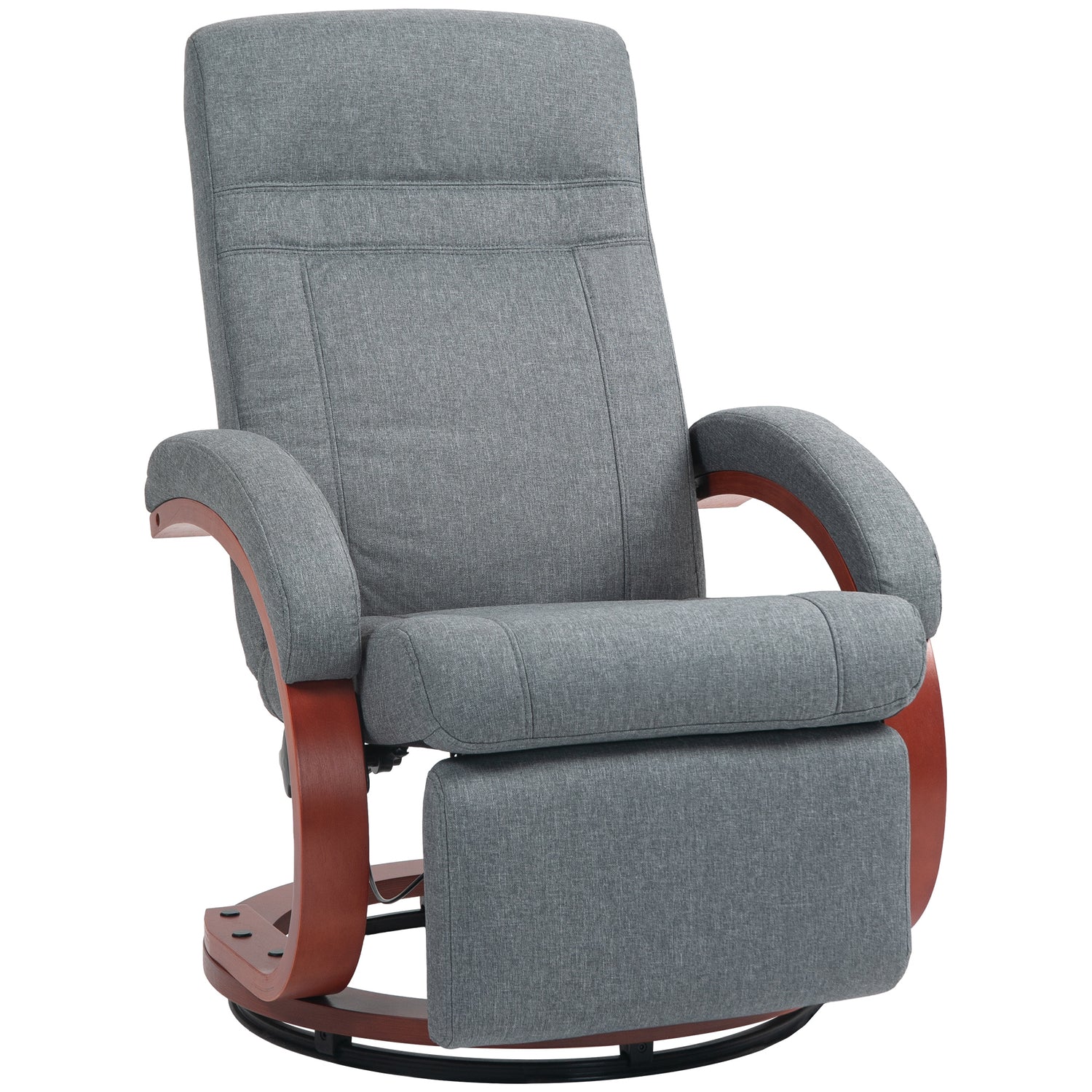 A place to relax, whenever you need with this HOMCOM recliner armchair. The 135° reclining backrest and independently-moving footrest are here to relax your body. The reclining chair with high back and curved armrests support your body, whilst the padded seat and linen-look upholstery keep you comfortable. Complete with a 360° swivel wooden base for support and movement.
