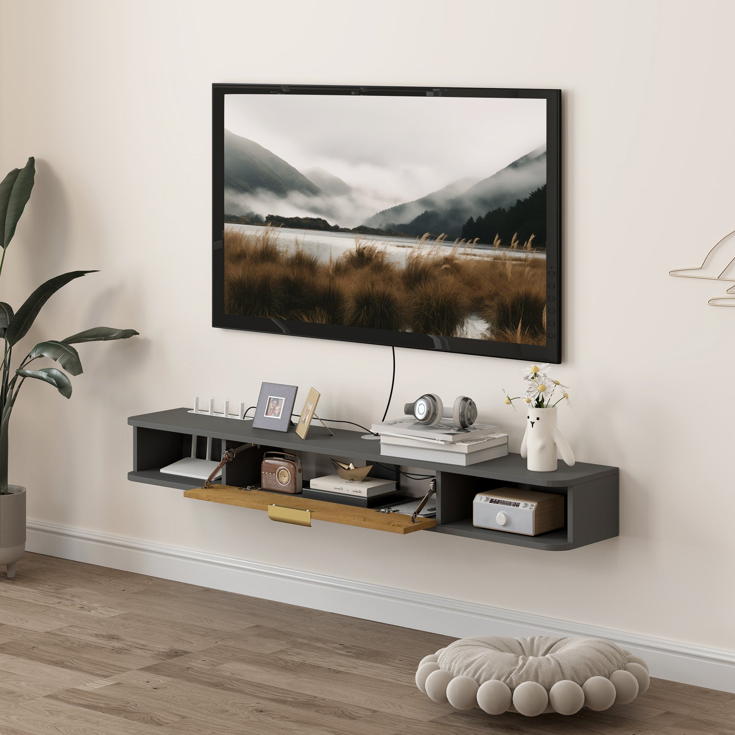 - Wall-mounted design: Free up precious floor space with this floating TV unit. Its wall-mounted design transforms your living room into a spacious retreat, making every inch count
