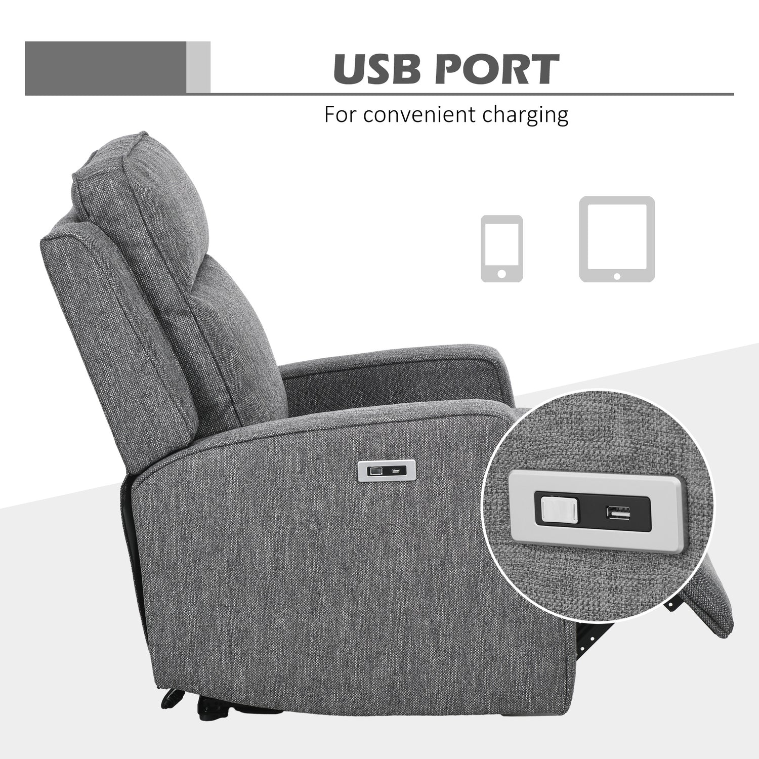 HOMCOM 150° Electric Reclining Chair, with USB port and Footrest - Charcoal Grey