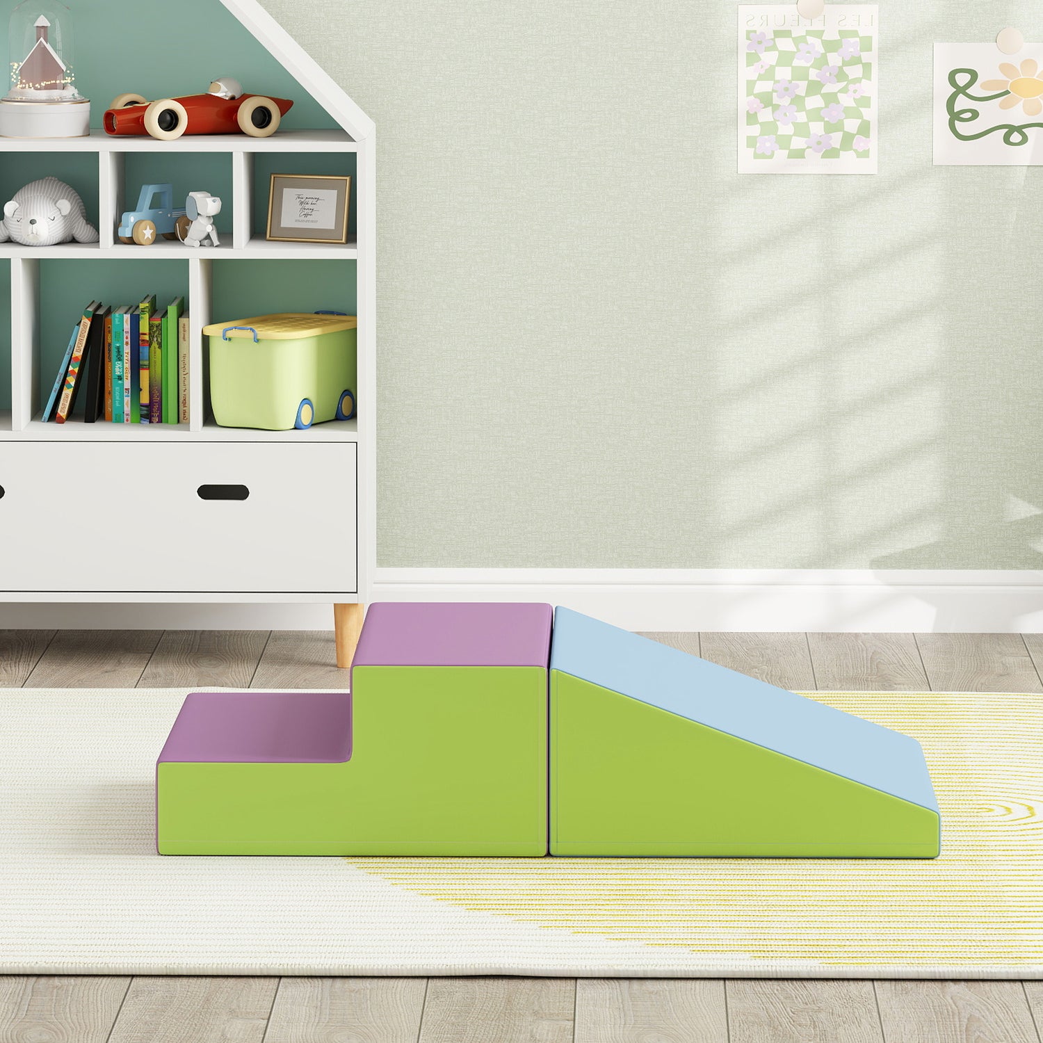 HOMCOM 2 Piece Soft Play Set for Toddler Climb and Crawl, for 12-36 Months, Blue