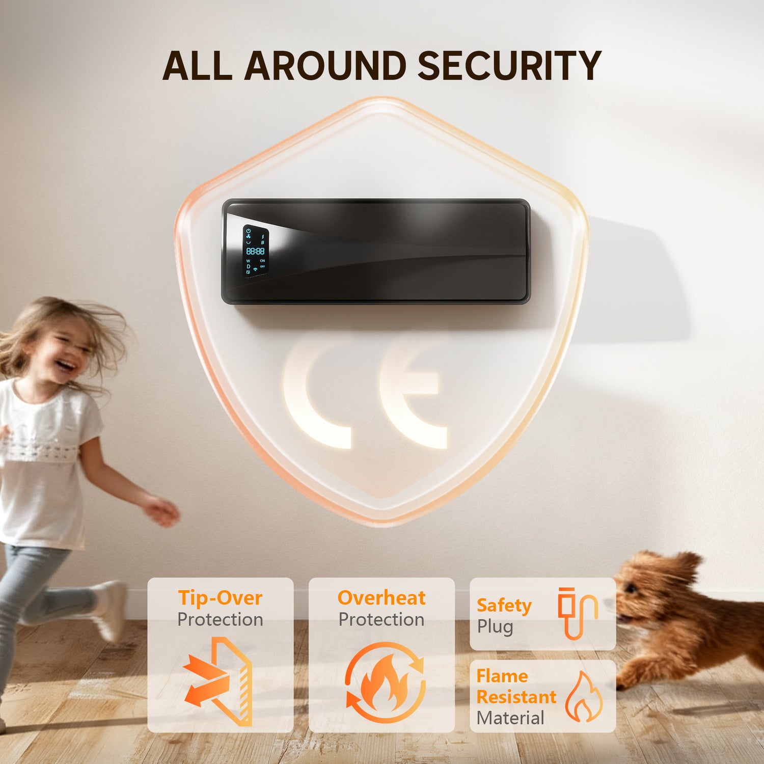 - Safety assurance: Built for complete peace of mind, this wall heater's overheat protection, IP23 water resistance, high-temperature resistant material, a safety plug and children lock ensure safe, reliable warmth for your family every day
