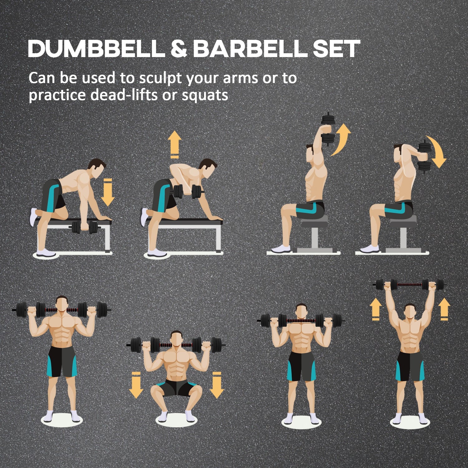 HOMCOM 20kg Adjustable Dumbbells Set, 2-in-1 Weight Barbell for Fitness Training, Black