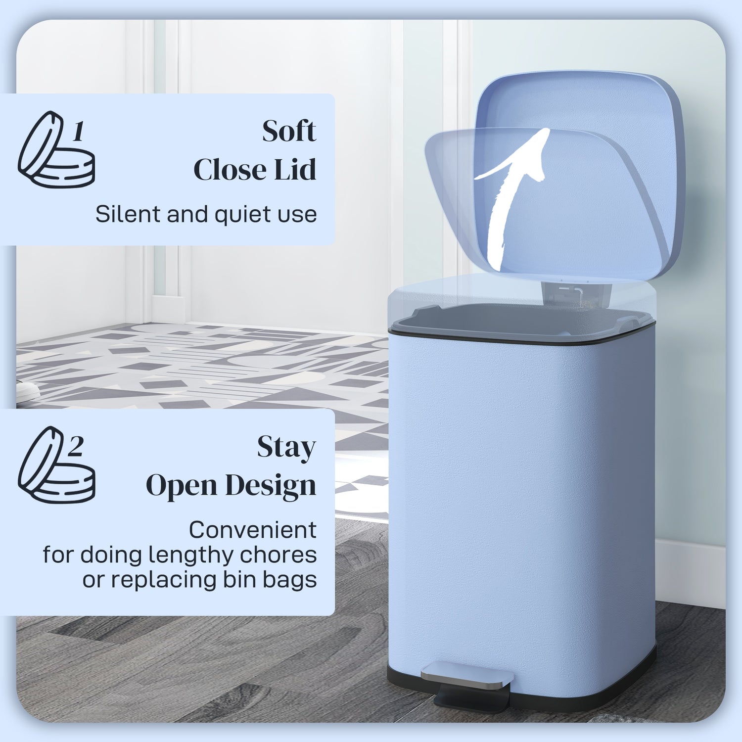 HOMCOM 20L Modern Boxy Metal Home Kitchen Bin - Light Blue