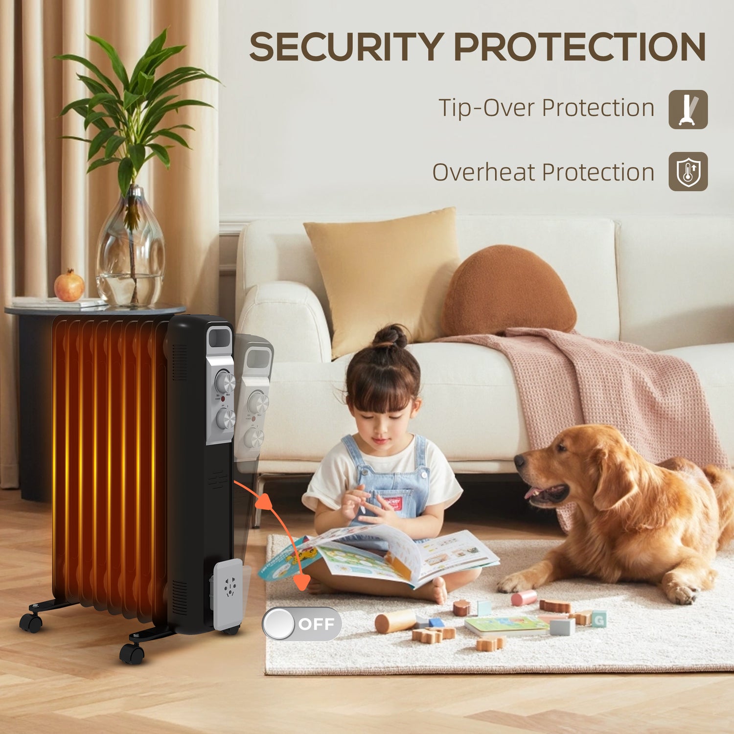 HOMCOM 2kW Nine Fin Oil-Filled Radiator - Black