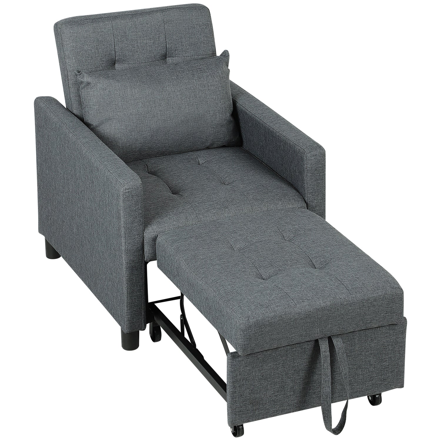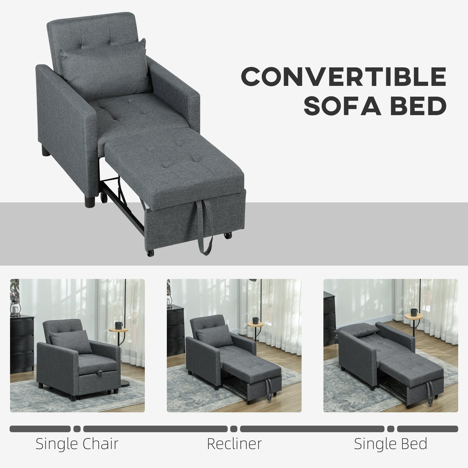HOMCOM 3-In-1 Chair Bed, Convertible Sleeper Chair with Adjustable Backrest, Pillow and Footrest for Living Room, Dark Grey