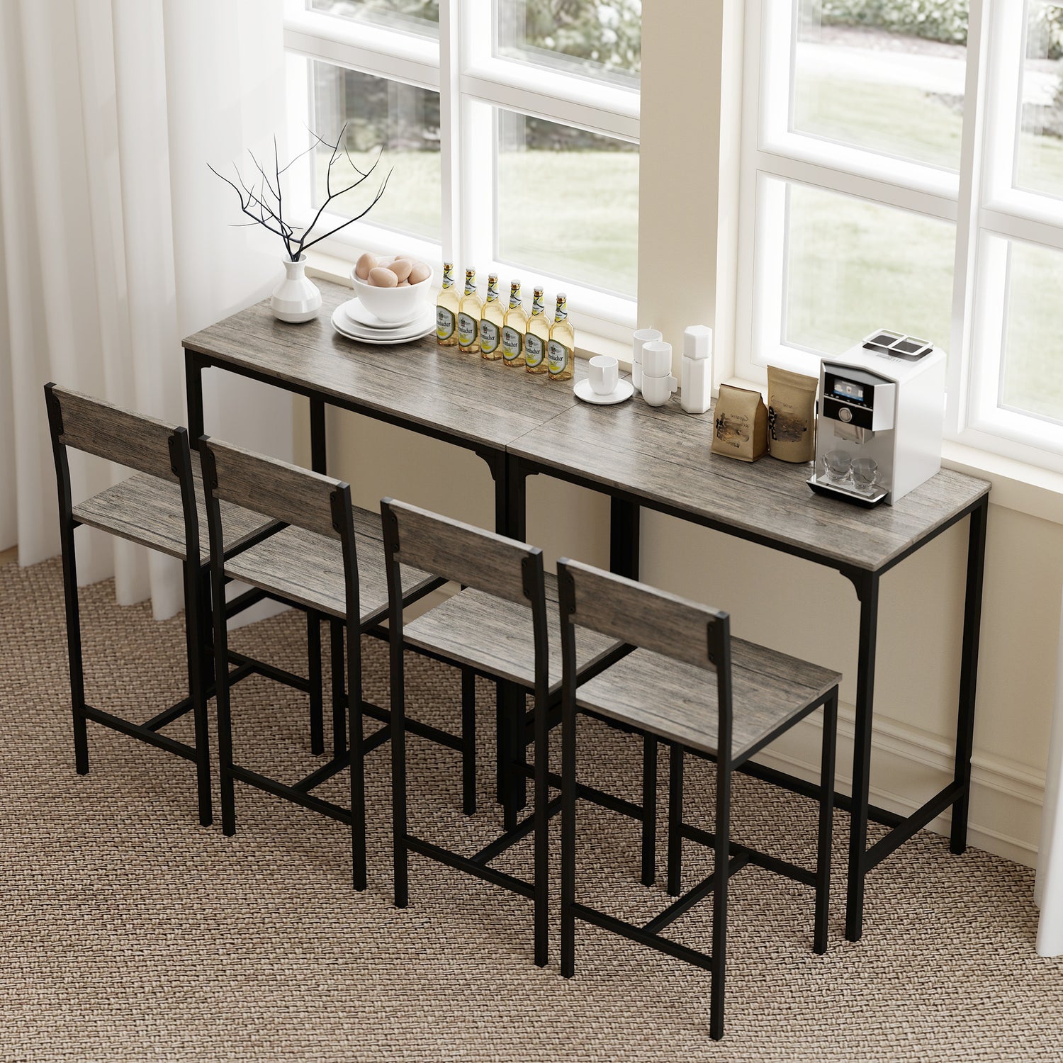 - Industrial bar table set: This set includes a rectangular table and two stools, blending charcoal grey panels with a sleek black metal frame for a chic industrial look. Great for daily dining or enjoying drinks with friends