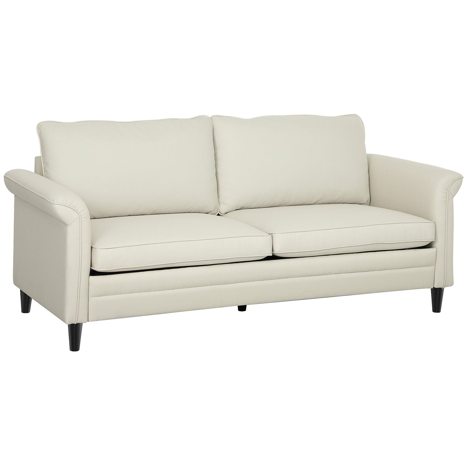HOMCOM 3 Seater Sofa, Modern Fabric Couch with Spring Cushion, Rubber Wood Legs, 191cm for Living Room, Bedroom, Home Office, Cream White