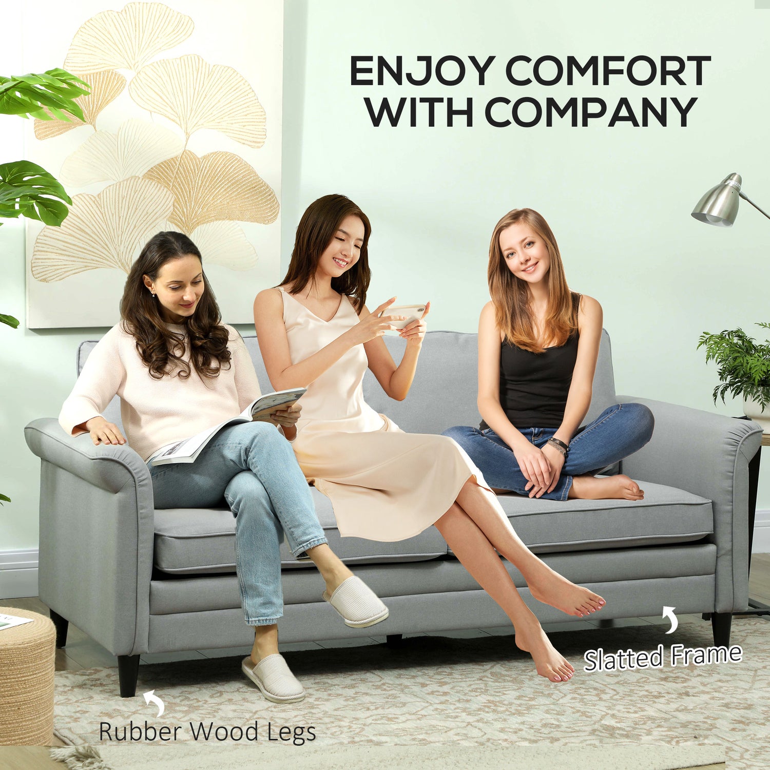 HOMCOM 3 Seater Sofa, Modern Fabric Couch with Spring Cushion, Rubber Wood Legs, 191cm for Living Room, Bedroom, Home Office, Grey