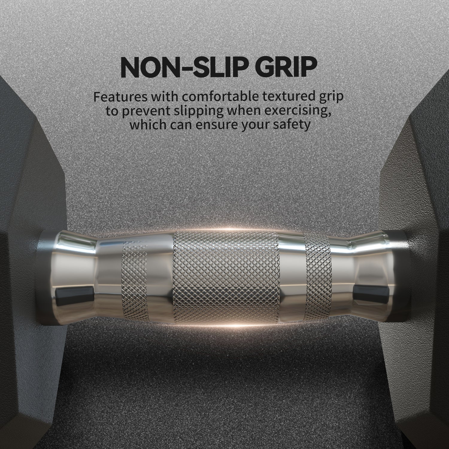 - Rubber covered ends for safety when dropped, hexagon shape stops weight rolling