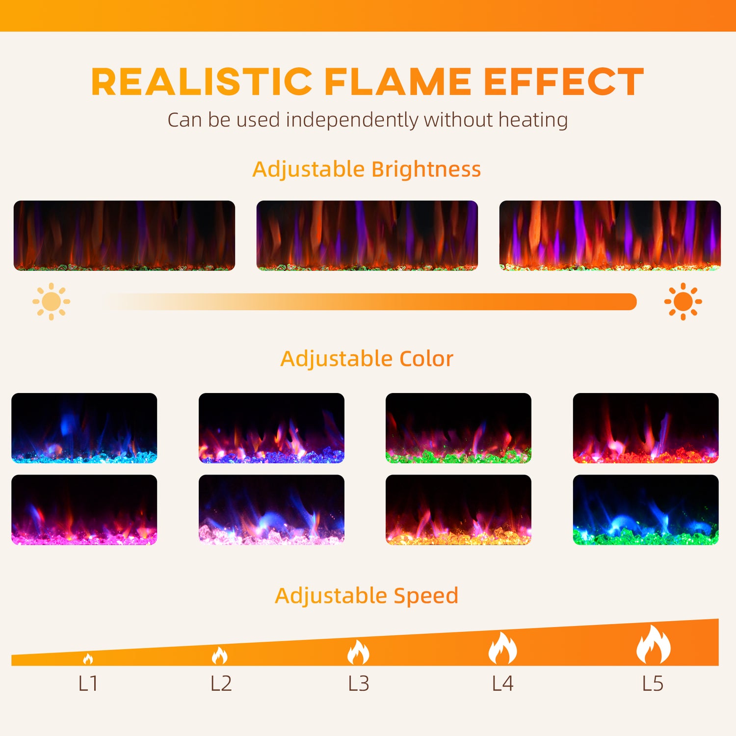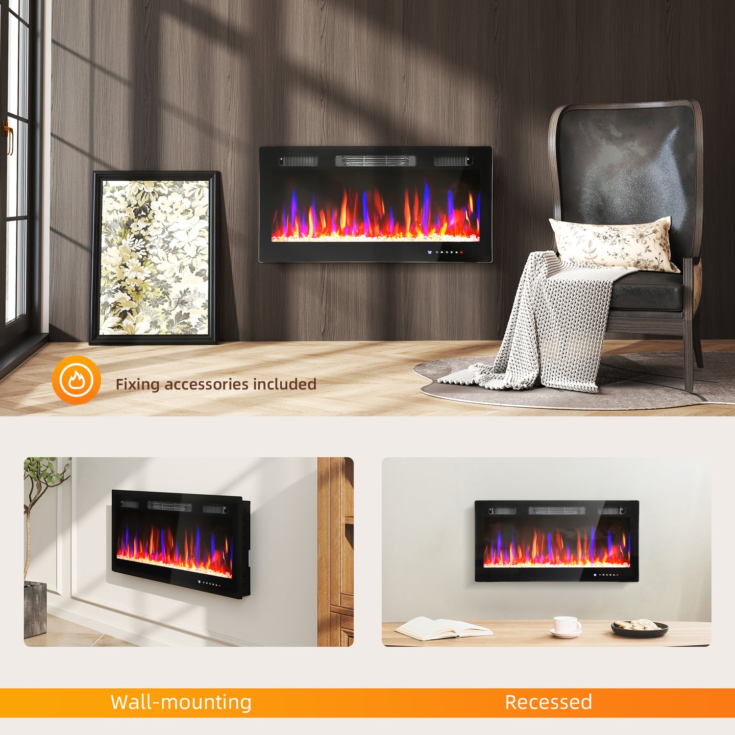 HOMCOM 36" Ultra-Slim Electric Fireplace, Wall Mounted and Recessed, 900W/1800W