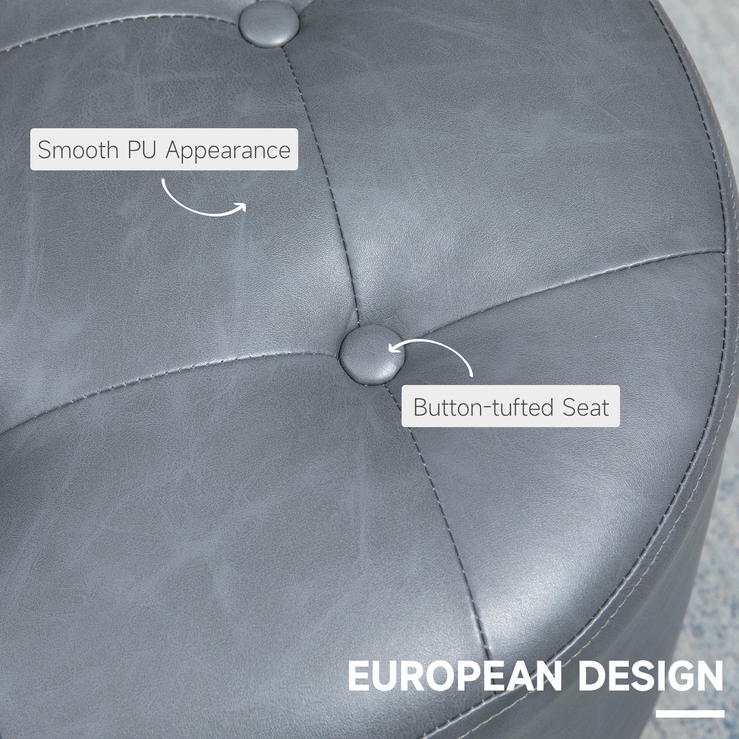HOMCOM 360° Swivel Foot Stool Round PU Ottoman with Thick Sponge Padding and Solid Steel Base, Grey