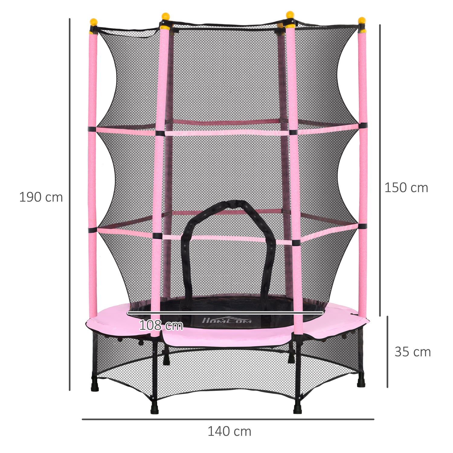 HOMCOM 4.6FT/55" Kids Trampoline with Safety Enclosure, Outdoor Indoor Use, for Ages 3-10 Years, Pink