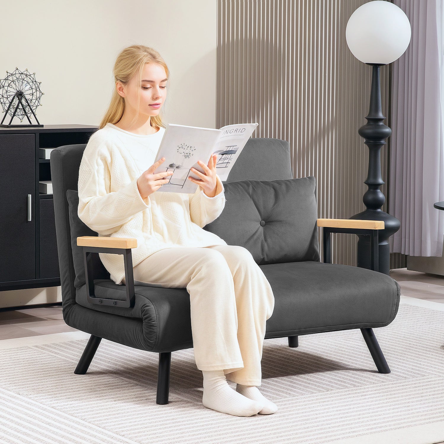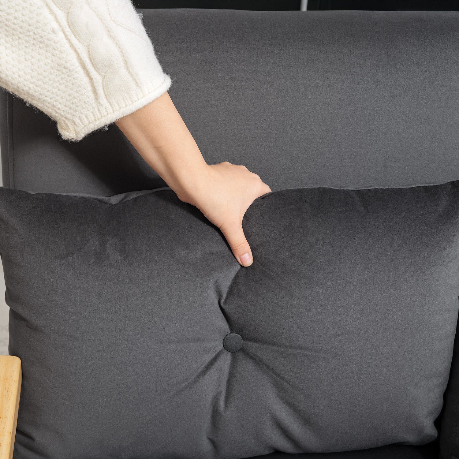 HOMCOM 4-in-1 Velvet-Feel Double Sofa Bed, with Pillows - Dark Grey