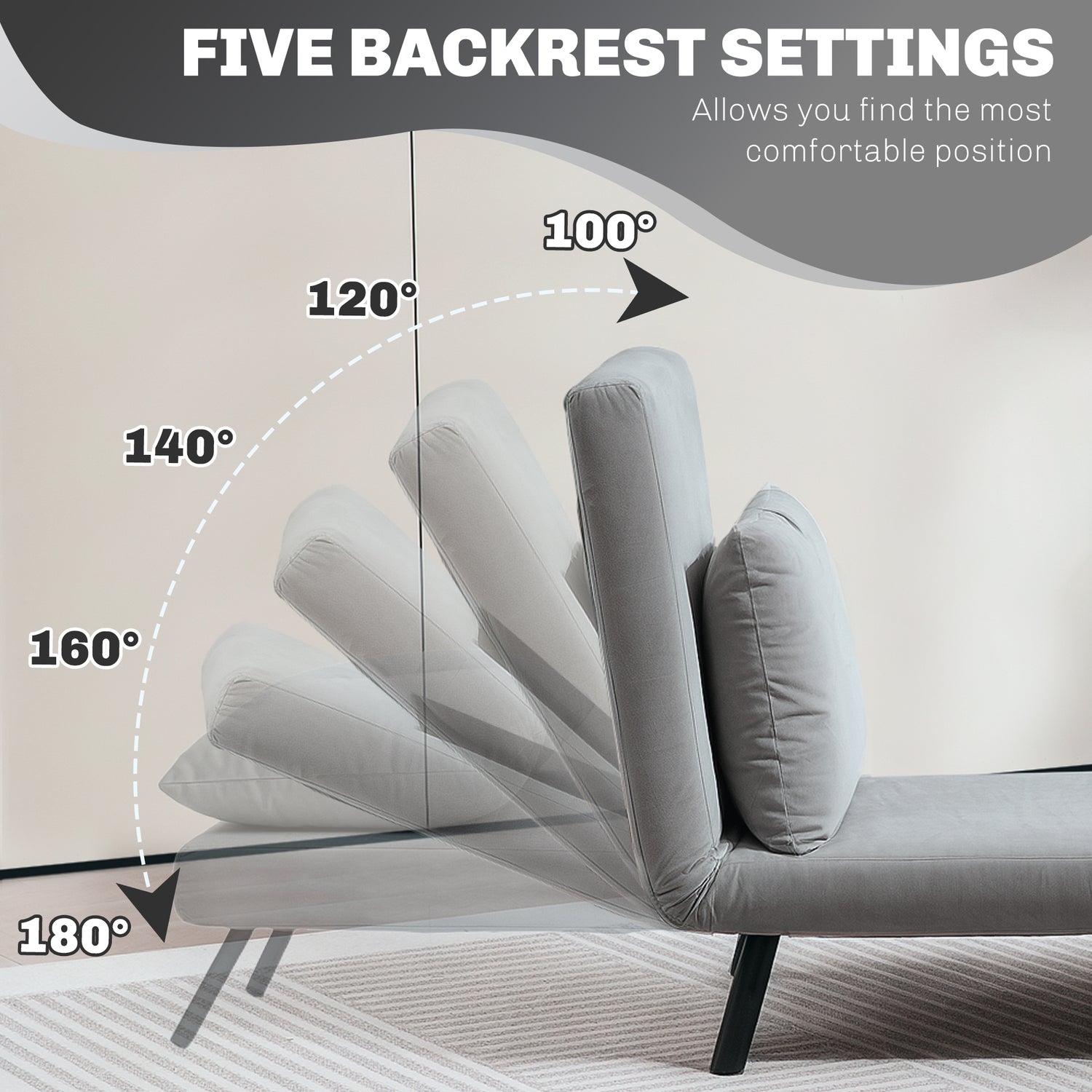 HOMCOM 4-in-1 Velvet-Feel Single Chair Bed, with Pillow - Light Grey