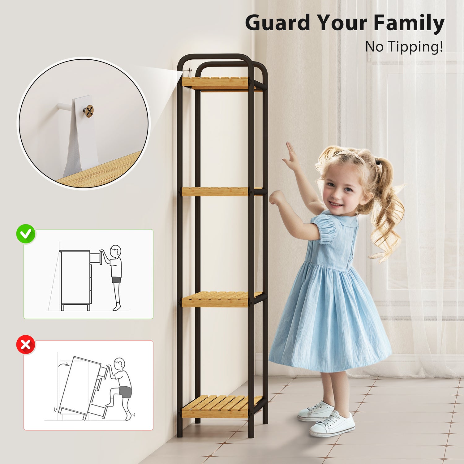 - Built to last: An anti-tip kit and a powder-coated steel frame with PP foot pads keep this freestanding shelf unit stable and secure, making it safe for families with little ones or elderly members