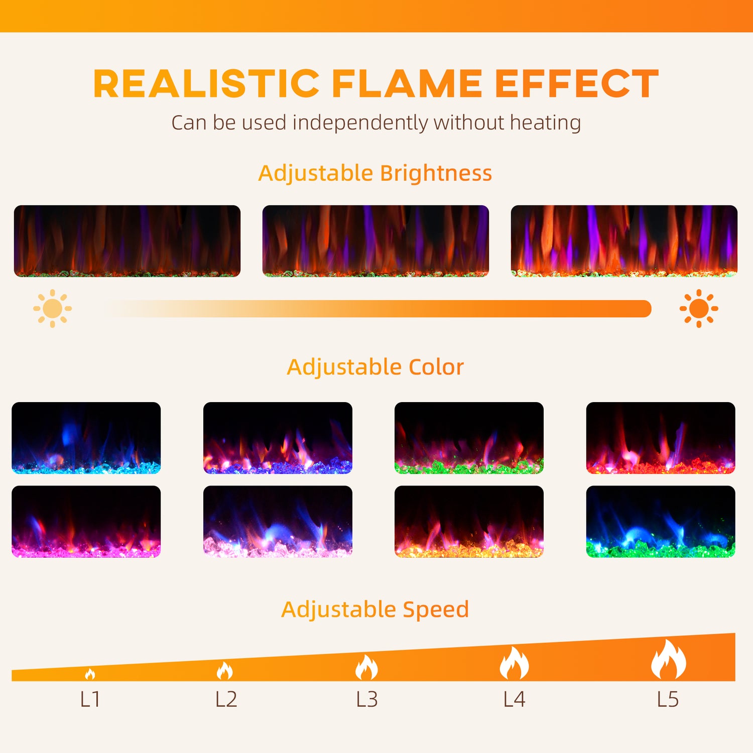 HOMCOM 42" Ultra-Slim Electric Fireplace, Wall Mounted and Recessed, 900W/1800W