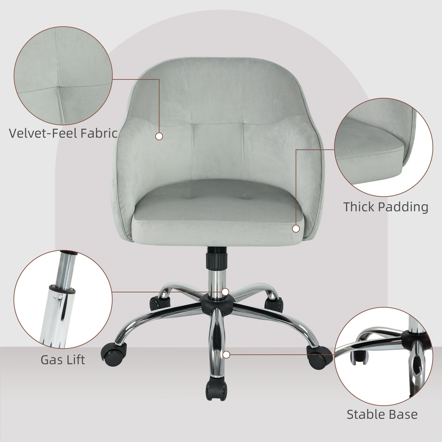 HOMCOM 46-56 cm Velvet-feel Office Chair - Grey