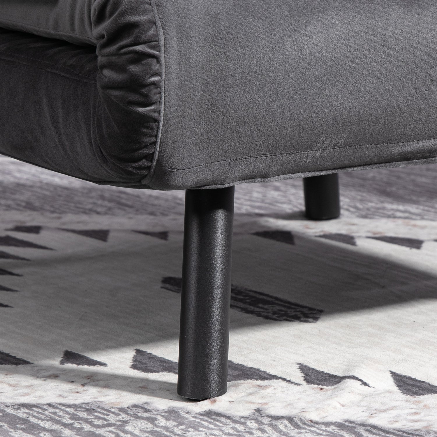 HOMCOM 4-in-1 Velvet-Feel Single Chair Bed, with Pillow - Charcoal Grey