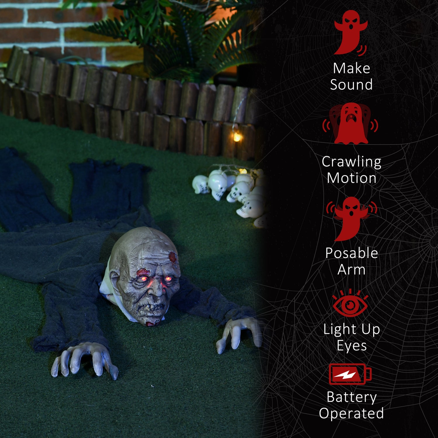 HOMCOM 5.2ft Life Size Outdoor Halloween Crawling Zombie, Animated Prop with Sound, Motion Activation, Light Up Eyes, Posable Arms, Howling Sound, Outdoor