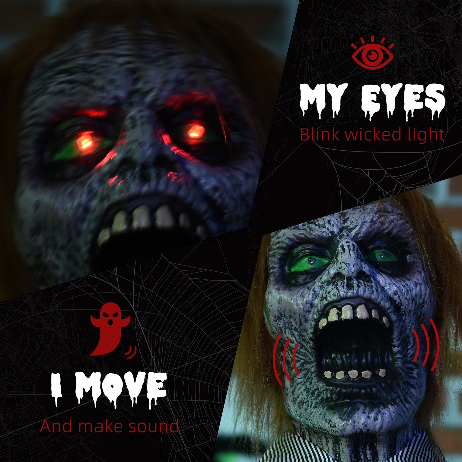 - Scare everyone: The large Halloween decoration can be flexibly placed indoors or (covered) outdoors with its battery-operated design. Use it for haunted houses, costume parties, or to scare trick-or-treaters.