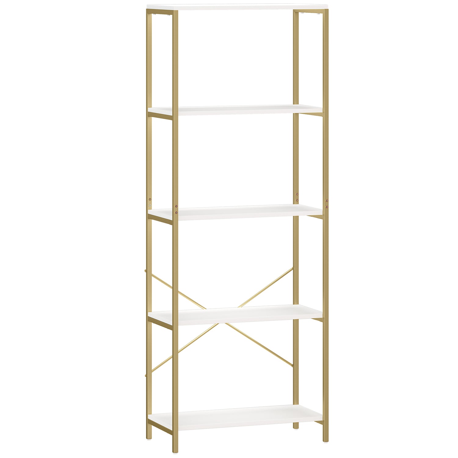 HOMCOM 5-Tier Bookshelf, Modern Bookcase with Metal Frame - White and Gold Tone