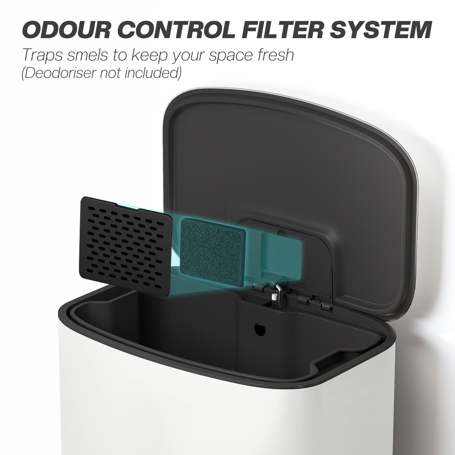 - Removable leakproof inner bucket: This kitchen pedal bin features a large plastic liner with a built-in odour filter and hidden bag design, helping prevent spills, trap smells, and make cleaning and emptying easier than ever