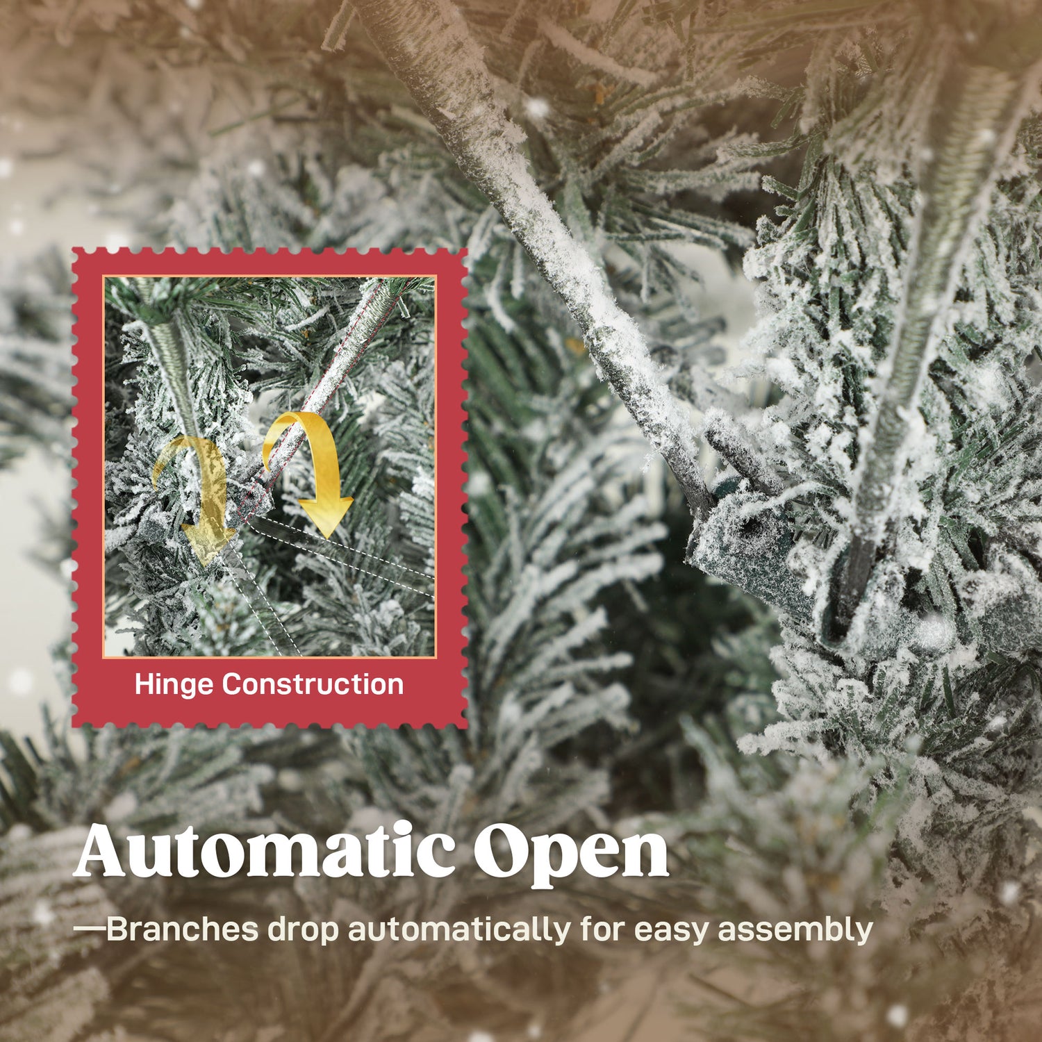 HOMCOM 6 ft Artificial Flocked Christmas Tree with 1182 Branches, Hinged Xmas Tree with Foldable Metal Stand, Easy Assembly for Home Office Decor