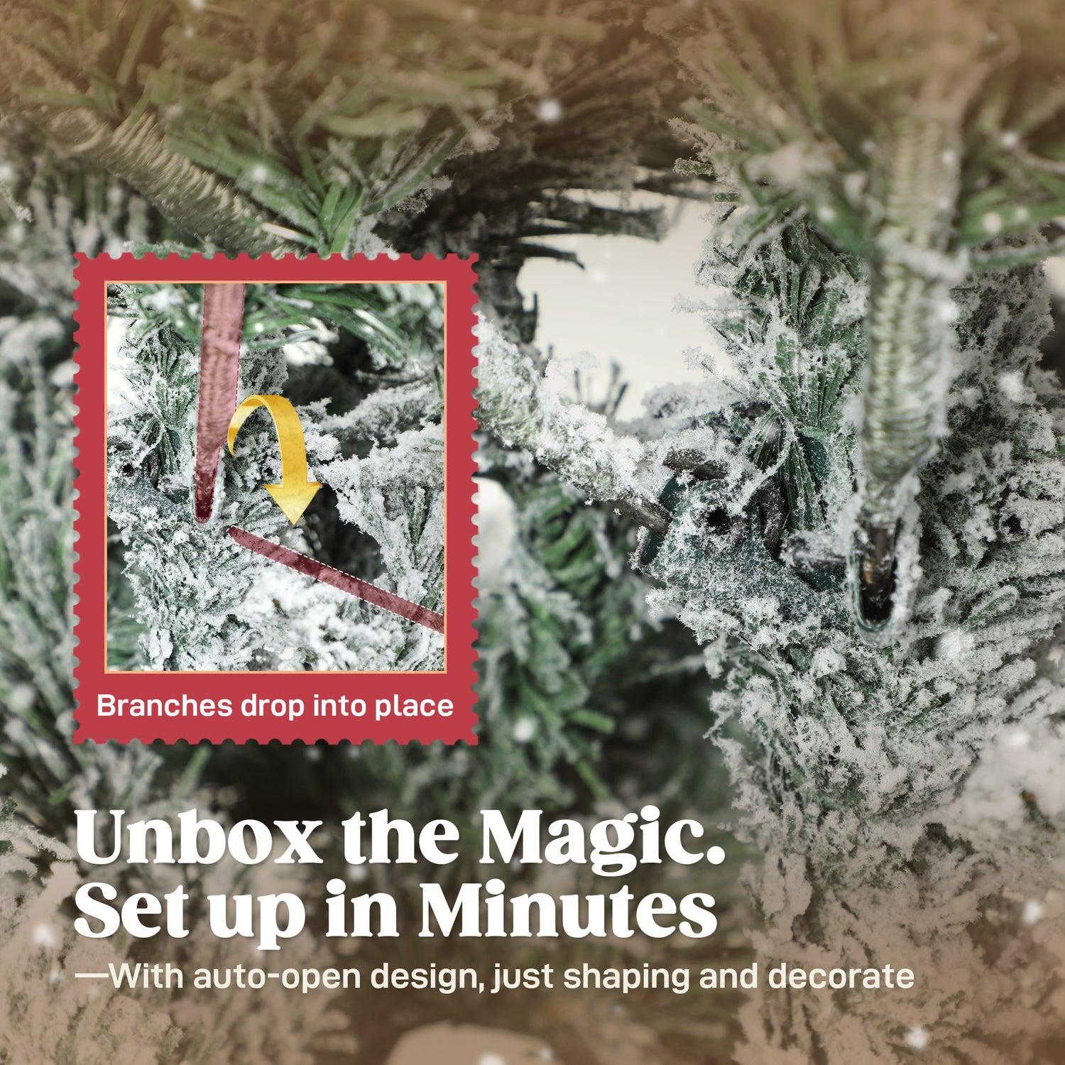- Flame-retardant materials: Every needle on this snowy Christmas tree is safe in family homes. Peace of mind for everyone. Do not expose to naked flames.