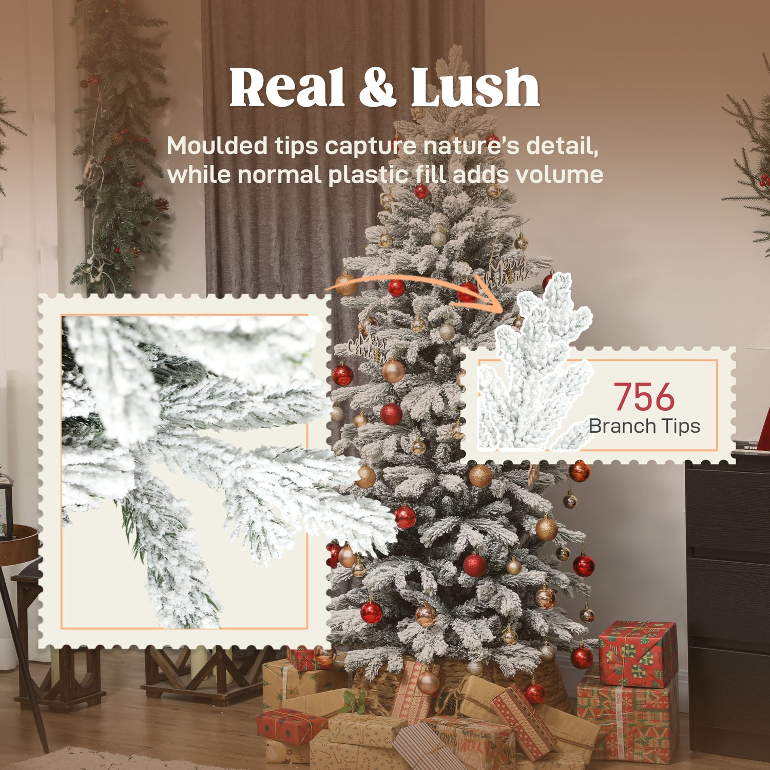 - Realistic: Moulded tips that mimic real branches and layered tips create a lush lifelike look - realistic Christmas tree is a beautiful addition to your seasonal set-up.