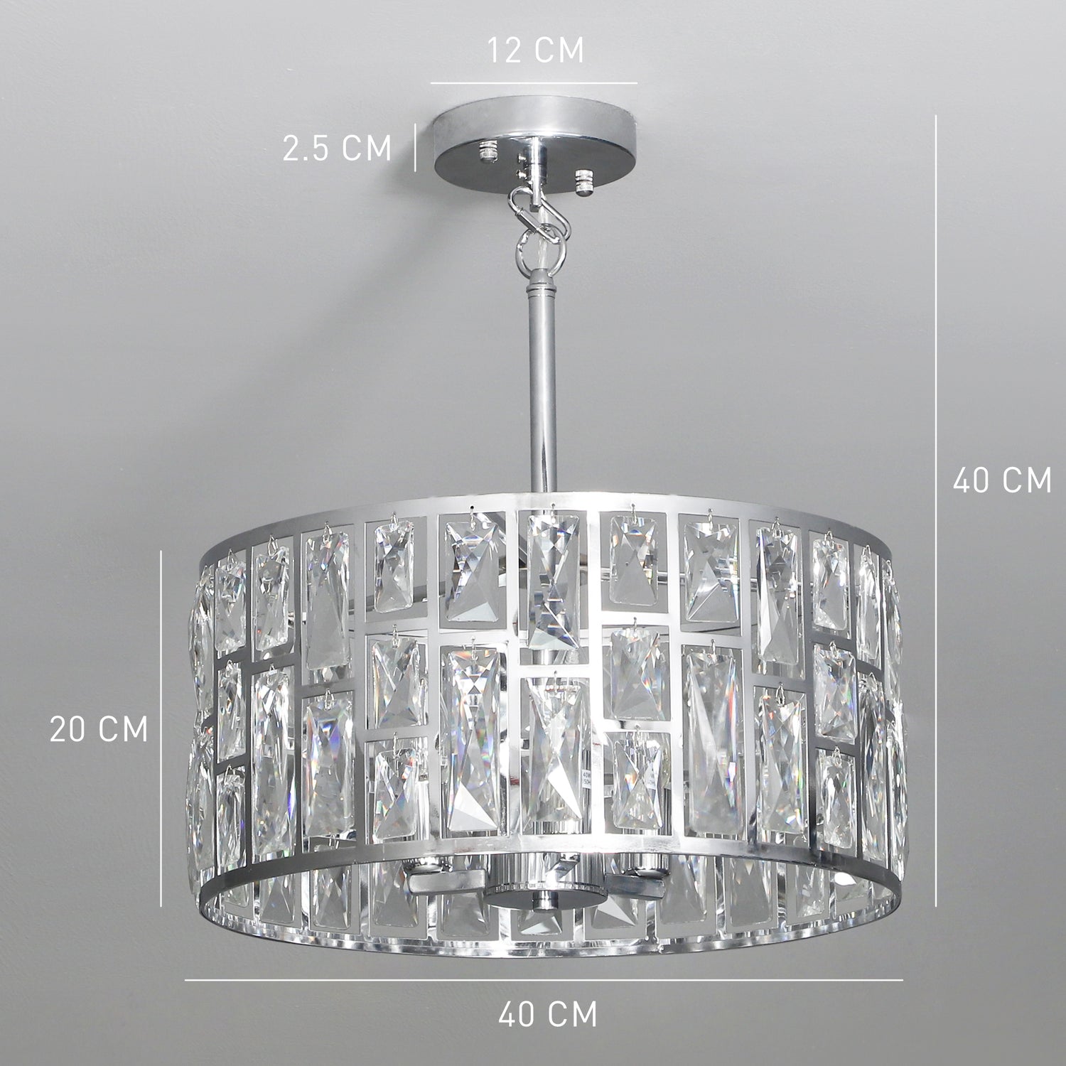 A forever-sparkling centrepiece for all over your home - this HOMCOM ceiling light offers both flush mount and hanging chandelier options, fitting any room. A strong metal frame, formed into a grid design with 72 glass crystallite pieces placed throughout - allowing the light from the three bulbs to shine through and glisten: a beautiful centrepiece for hallways, bedrooms livings rooms - and wherever else you want.