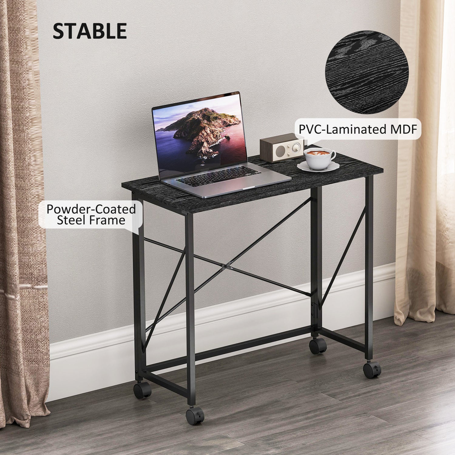 HOMCOM 80 cm Folding Desk on Wheels - Black