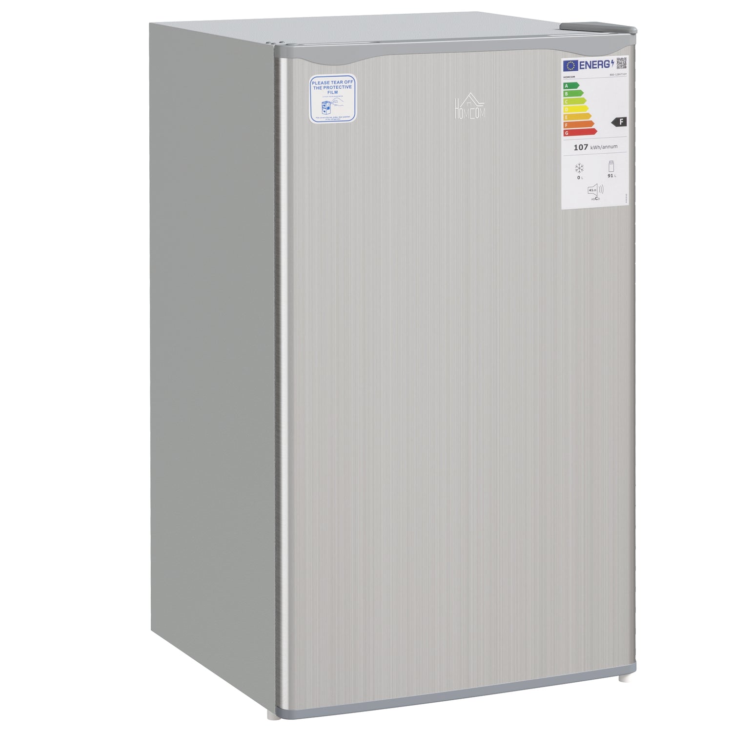 HOMCOM 91L Freestanding Under-Counter Fridge with Lock - Silver Tone