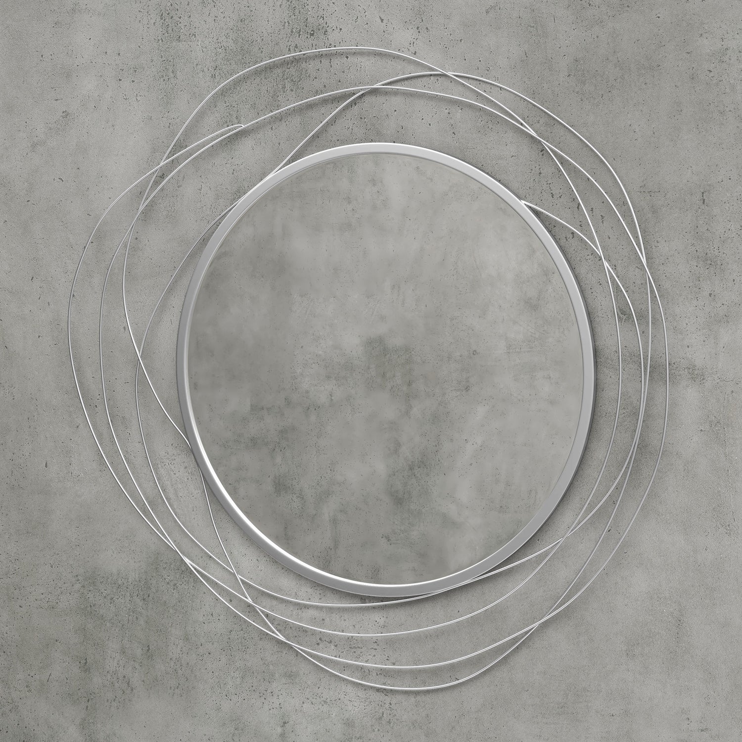 - Abstract frame: A cluster of asymmetrical metal pieces around the circle mirror. A distinctive touch to your wall and enhancing any room's aesthetic.