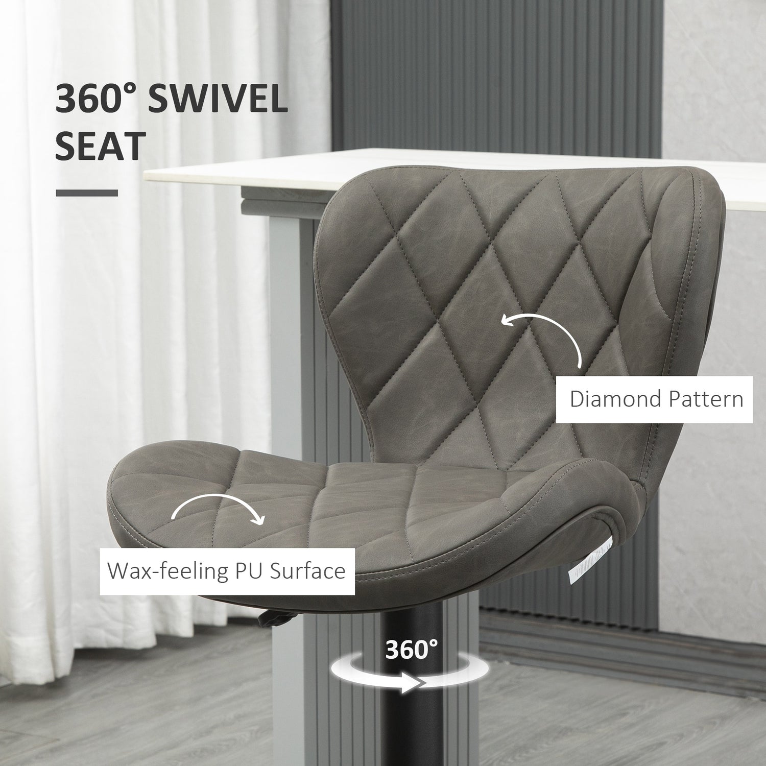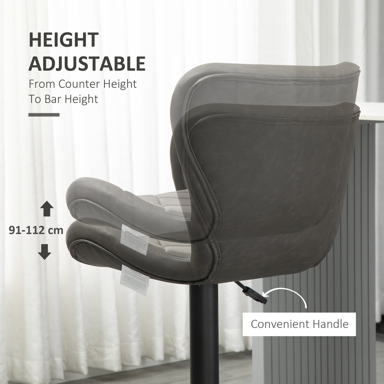 HOMCOM Adjustable Height Bar Stools Set of 2, Swivel Barstools with Backrest and Footrest, Steel Frame Diamond Pattern PU, for Kitchen Counter Dining Room, Dark Grey