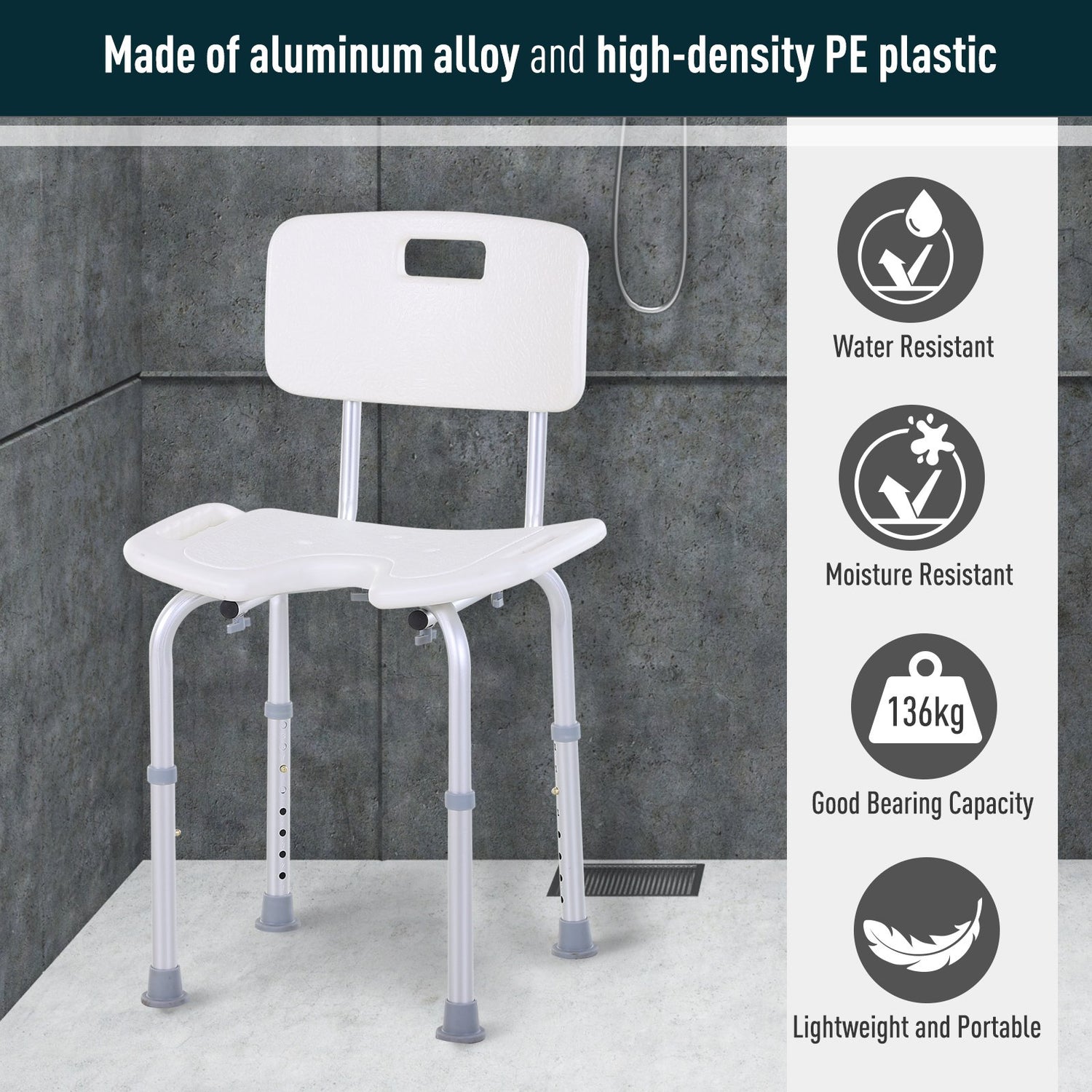 HOMCOM Aluminium-Alloy Mobility Aid Adjustable Shower Stool