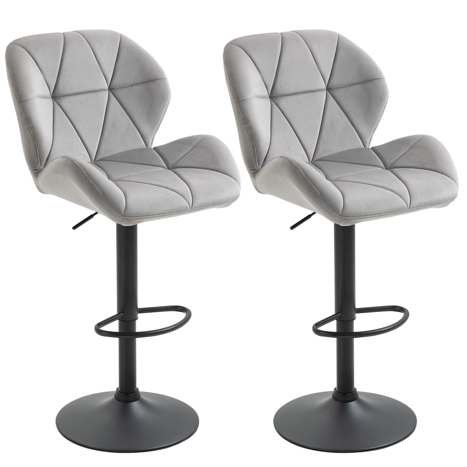 Dreaming of a more luxurious home? Awaken to these two bar stools from HOMCOM. Design blends moulded seats with velvet-feel upholstery for sophistication. There's triangle-panelling all over for a slightly retro feel and sponge padding for comfort. Each seat is fixed firmly onto a round metal base to keep the balance. It's finished with a low bar to rest your legs and feet. Whether dining higher or lower, these breakfast bar stools will provide the glamorous backdrop you've been yearning for.