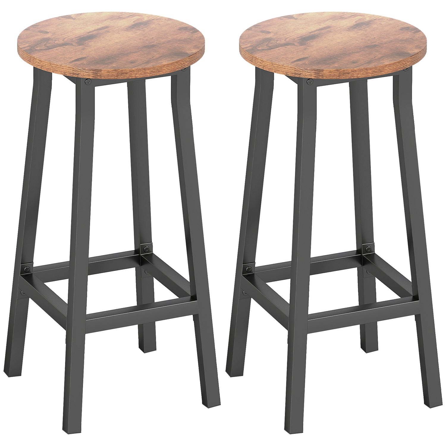 Tired of bar stools that force you to choose between style and comfort? Those rushed breakfasts and conversations cut short by hard, wobbly seats can diminish the joy of your home gatherings. Settle in for longer, more relaxing moments on these set of two bar chairs from HOMCOM. The blend of rustic brown panel and black steel frame offers industrial charm, provides ergonomic comfort and steadfast support for every cherished family conversation.