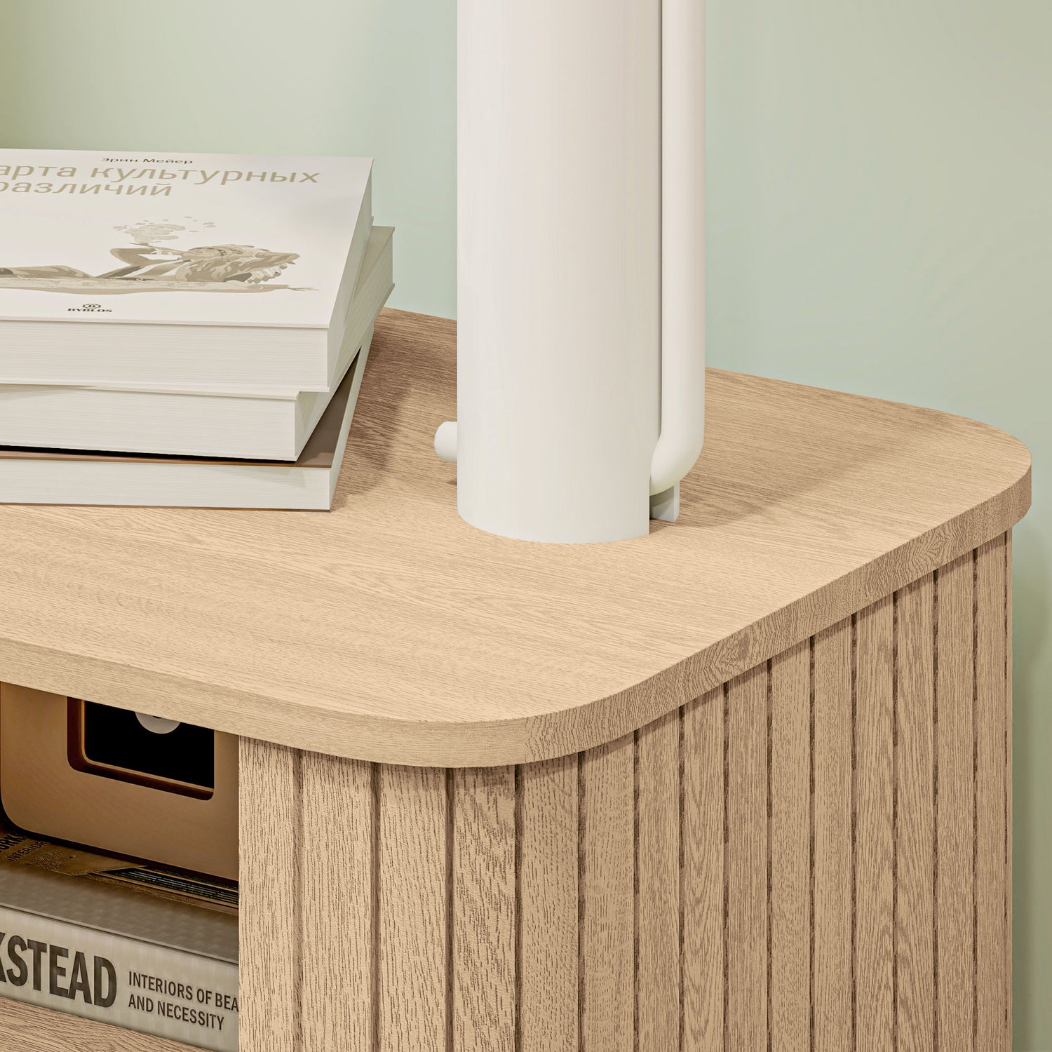 - Nordic charm: Blends a modern Nordic design with unique roller shutter style doors, suitable as a stylish bedside table or an attractive telephone table