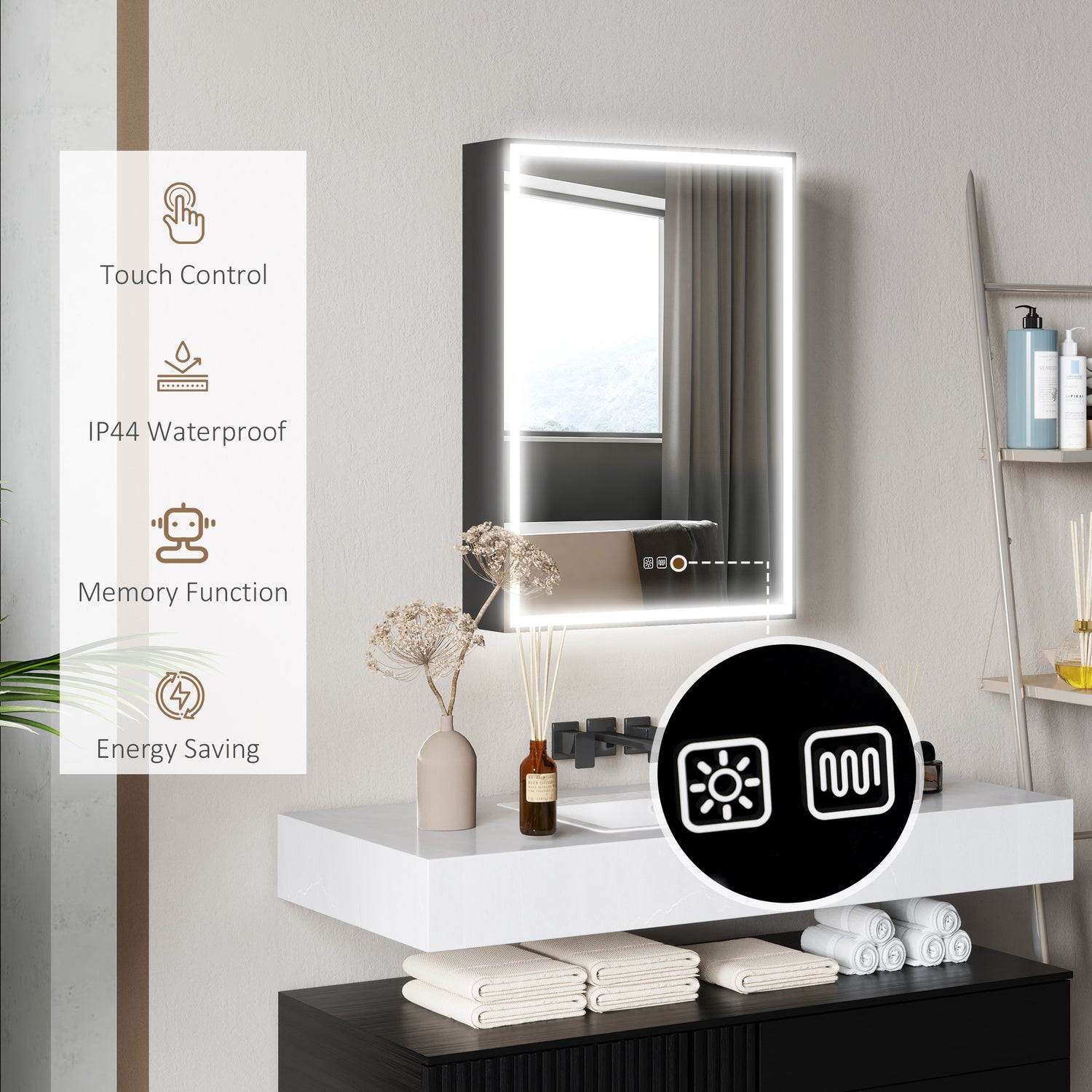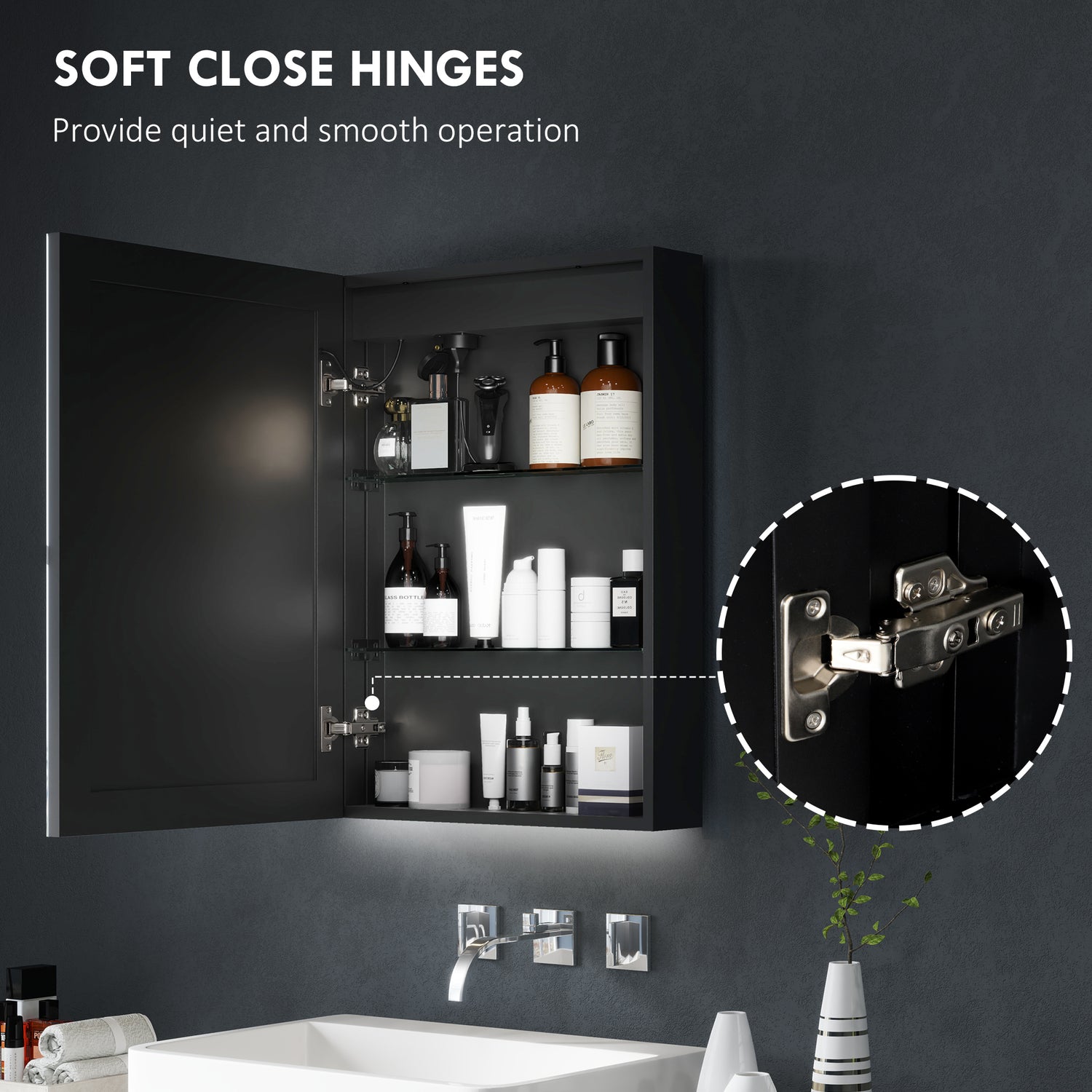 HOMCOM Black LED Bathroom Mirror Cabinet, 500x700 mm, Demister Pad, Dimmer, 3 Colours, Shaver Socket