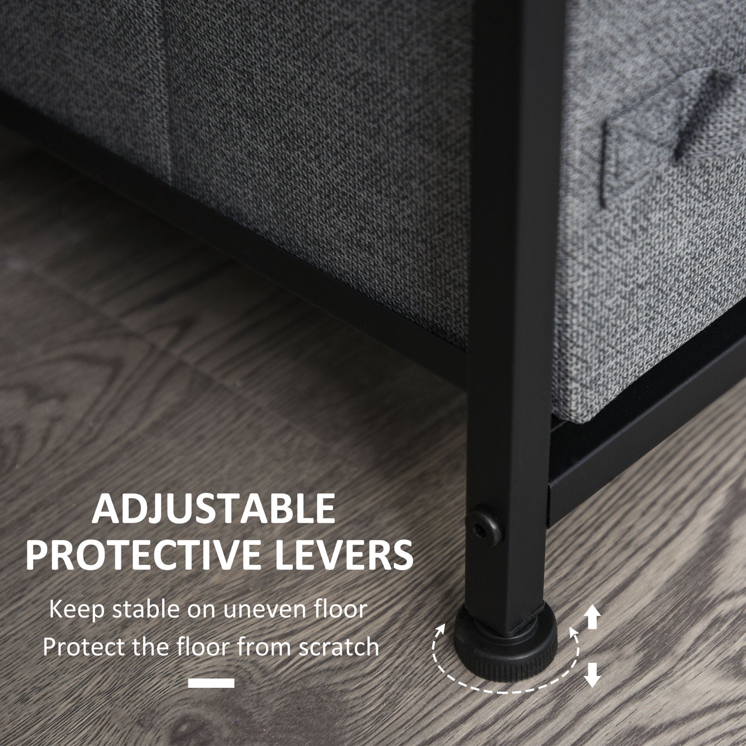 The HOMCOM bedroom chest of drawers is the great solution for keeping your bedroom organized. Built with a stable steel frame and engineered wood top, it provides reliable display space. With four small drawers and three large ones, it offers generous storage for clothes and other essentials. The adjustable feet ensure stability, making it suitable as a bedroom dresser, bedroom unit, or stylish fabric drawer for any modern space.